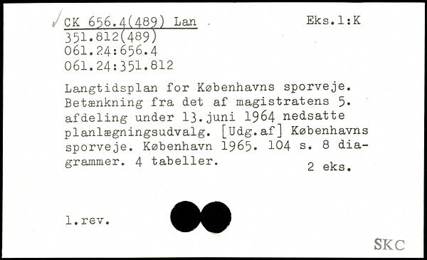 Langtidsplan for Københavns sporveje. Betænkning fra det af magistratens 5. afdeling ander 13.juni 19&4 planlægningsudvalg. [Udg.af] Københavns sporveje.