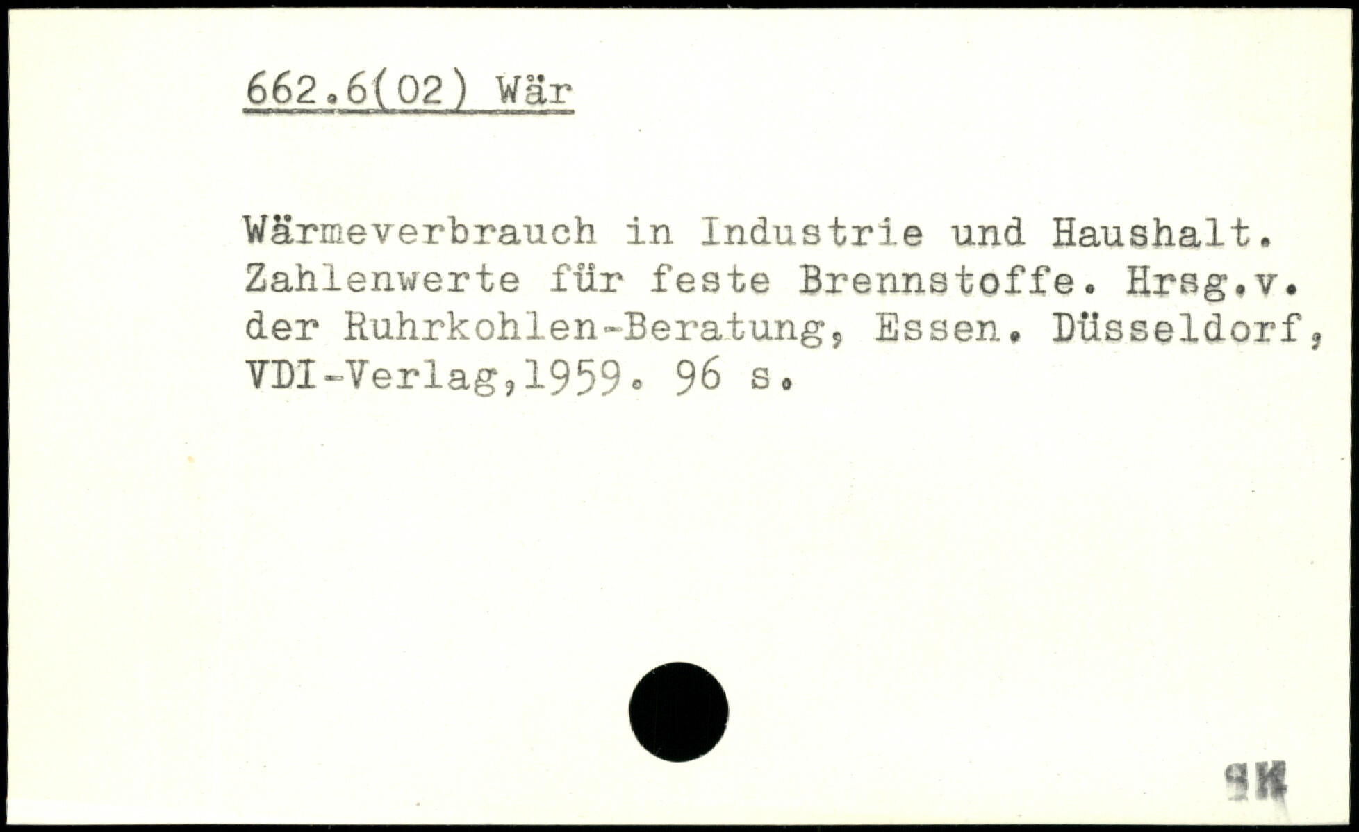 Wärmeverbrauch in Industrie und Haushalt. Zahlenwerte für feste Brennstoffe. Hrsg.v. der