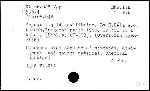 Vapour-liquid, equilibrium. By E.Hala a. o.