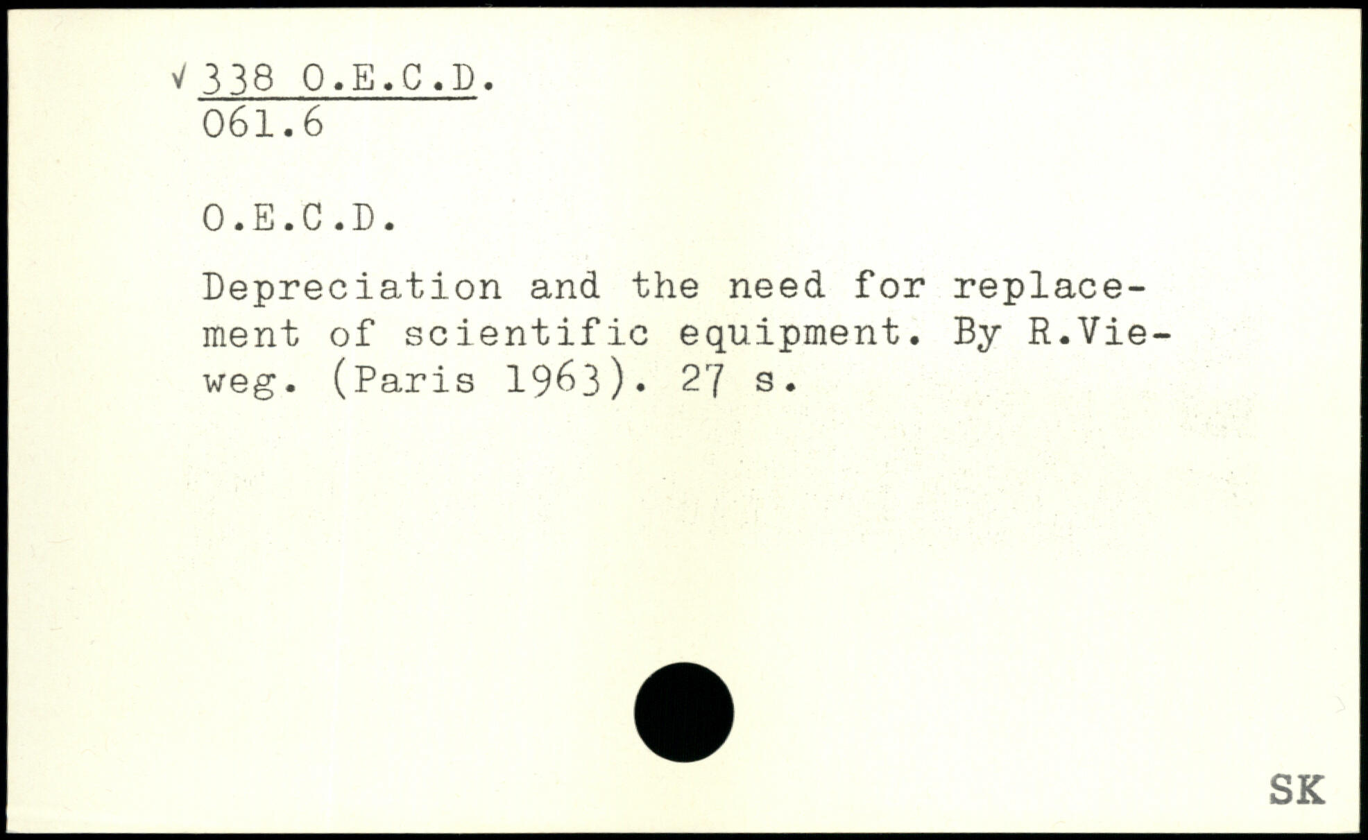 Depreciation and the need for replacement of scientific equipment. By R.Vie-weg. (
