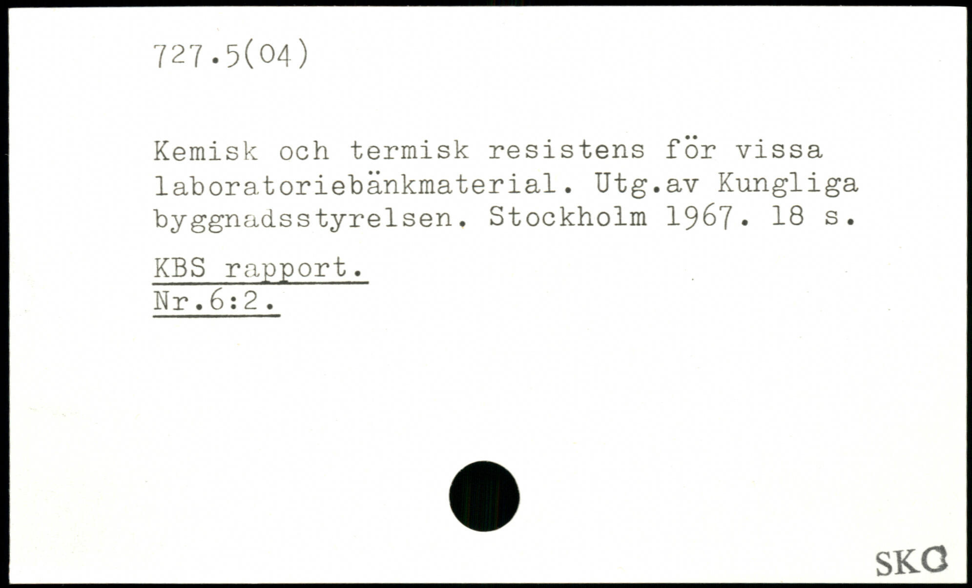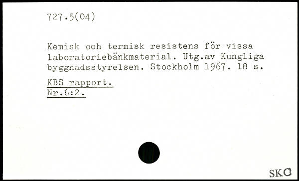 Kemisk och termisk resistens för vissa laboratoriebänkmaterial. Utg.av Kungliga byggnadsstyrelsen.