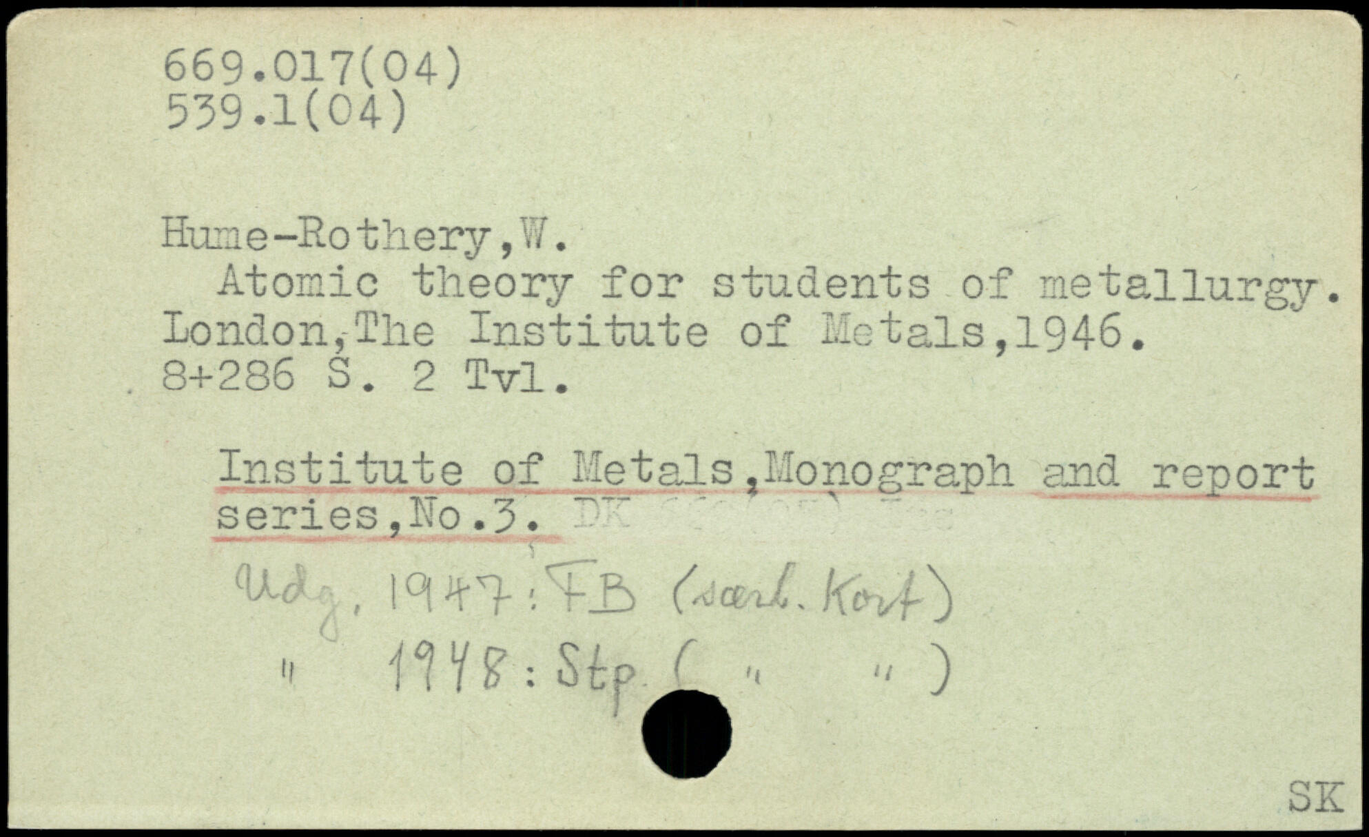 Hum e-Ro th ery, ¥. Atomic theory for students of metallurgy.