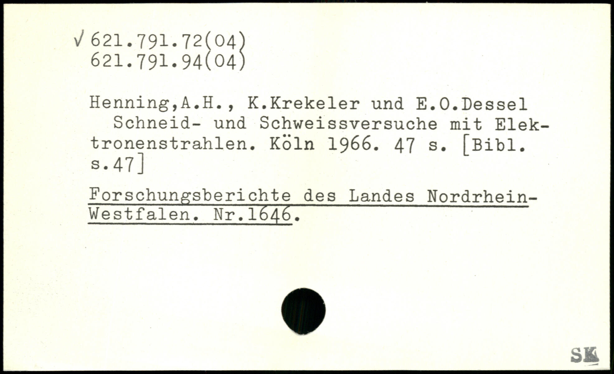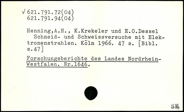 Henning,A.H., K.Krekeler und E.O.Dessel Schneid- und Schweissversuche mit Elek-tronenstrahlen.
