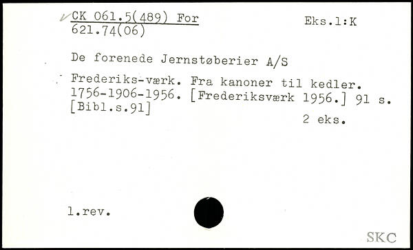 De forenede Jernstøberier A/S Frederiks-værk. Fra kanoner til kedler. 1756-1906-1956. [Frederiksværk 1956.]