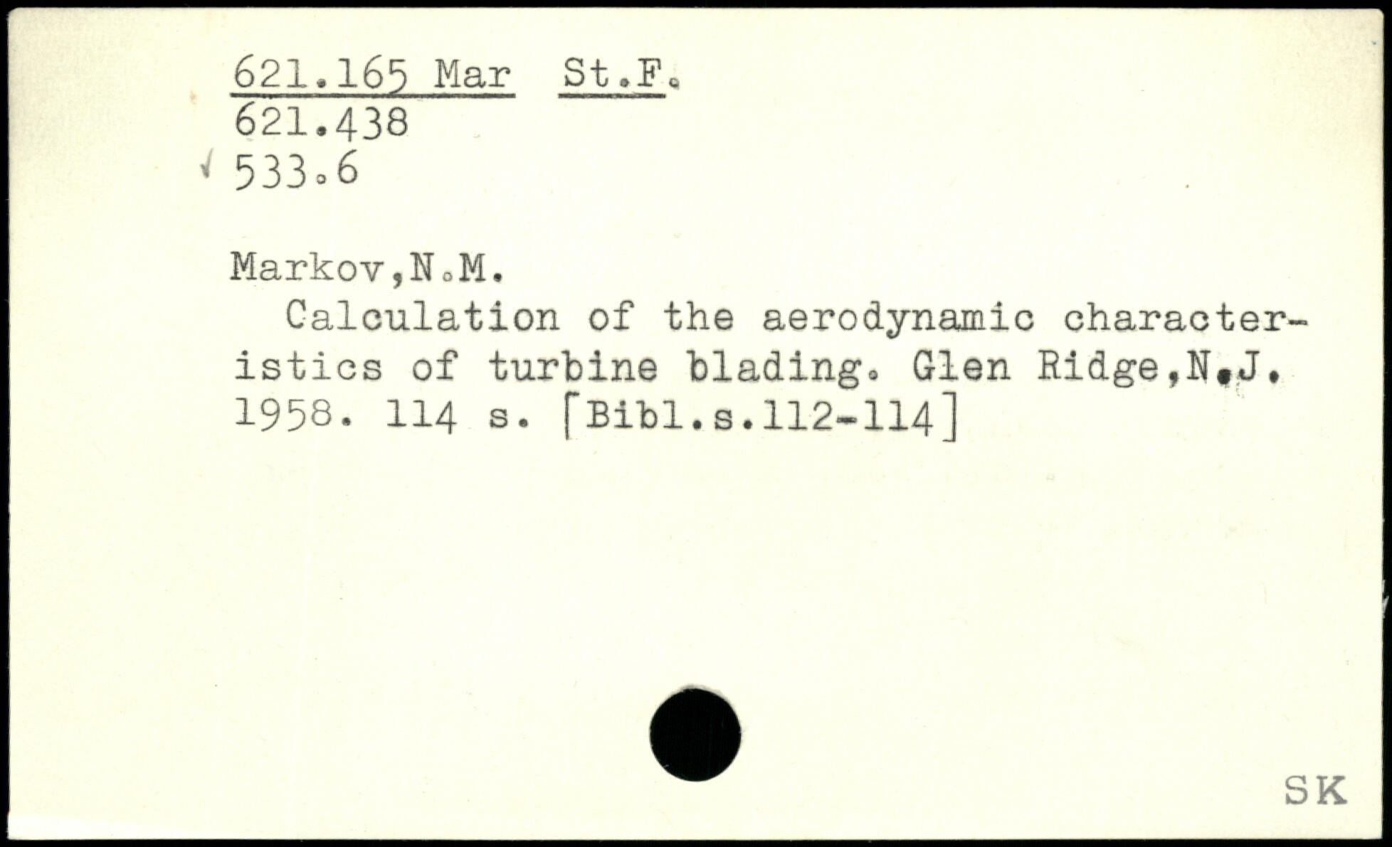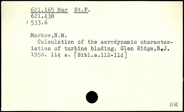 Calculation of the aerodynamic characteristics of turbine blading. Glen Ridge,N.J, 1958.