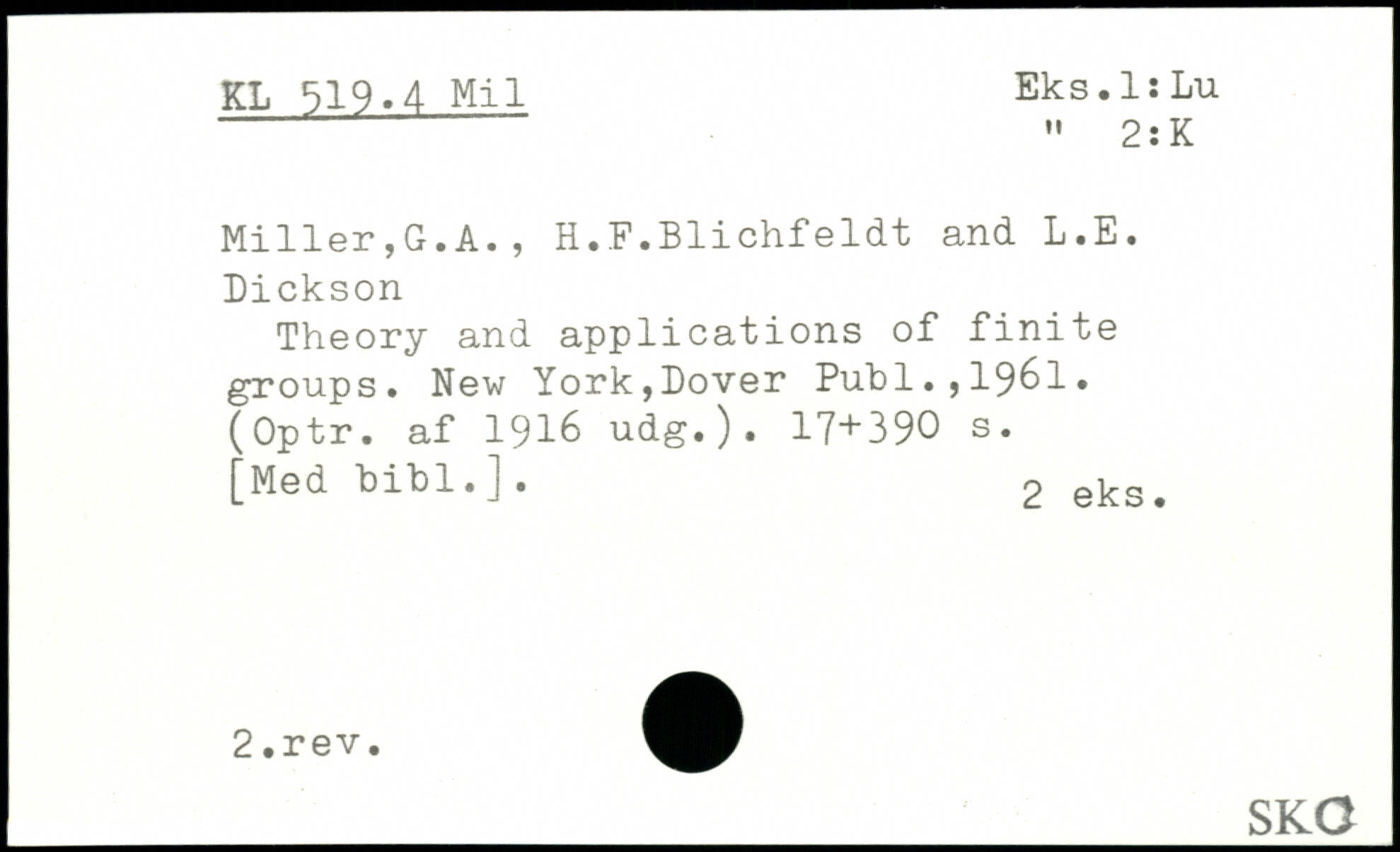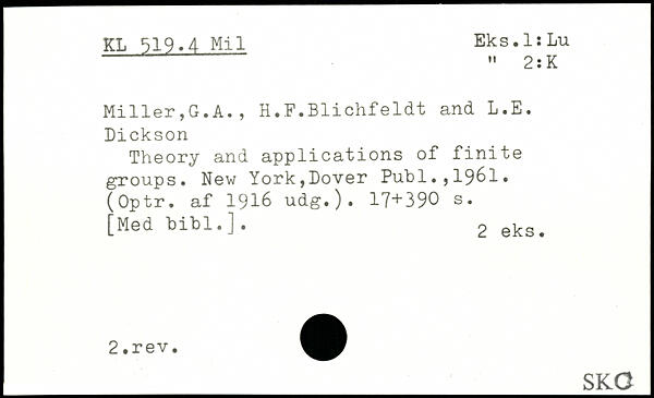 Miller,G.A., H.F.Blichfeldt and L.E. Dickson Theory and applications of finite groups.