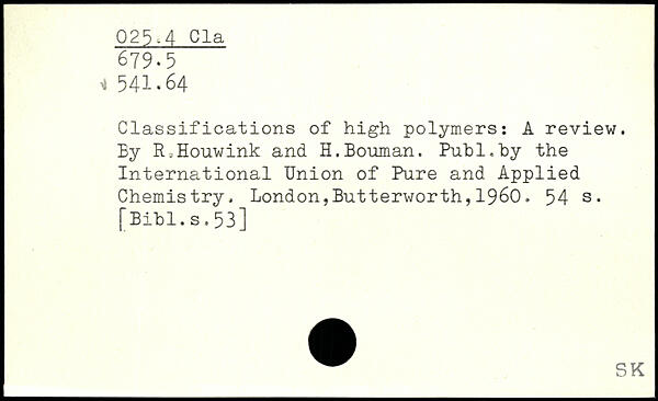 Classifications of high polymers: A review. Ey R=Houwink and H.Bouman. Puhl.hy the International Union of Pure and Applied Chemistry.