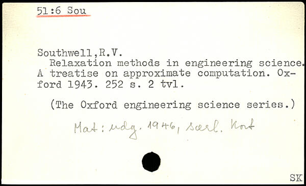 Relaxation methods in engineering science. A treatise on approximate computation.
