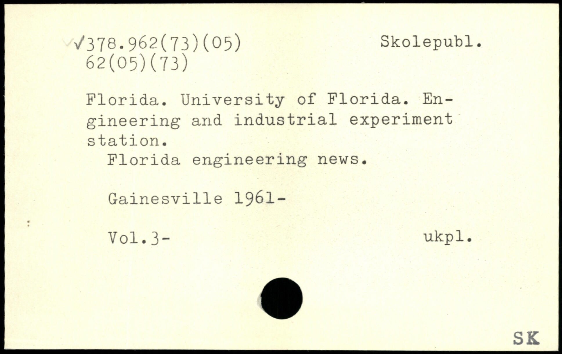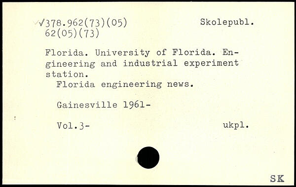 Florida. University of Florida. Engineering and industrial experiment station. Florida engineering news. Gainesville 1961-