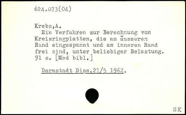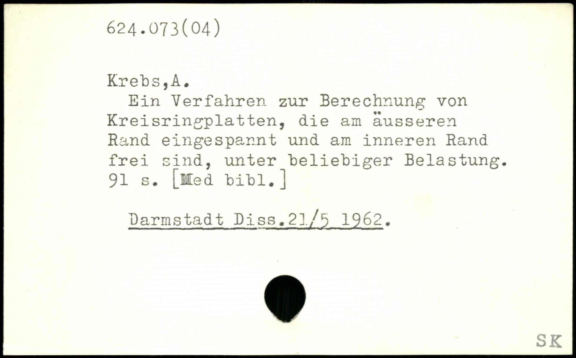 Ein Verfahren zur Berechnung von Kreisringplatten, die am äusseren Rand eingespannt und am inneren Rand frei sind, unter beliebiger Belastung.