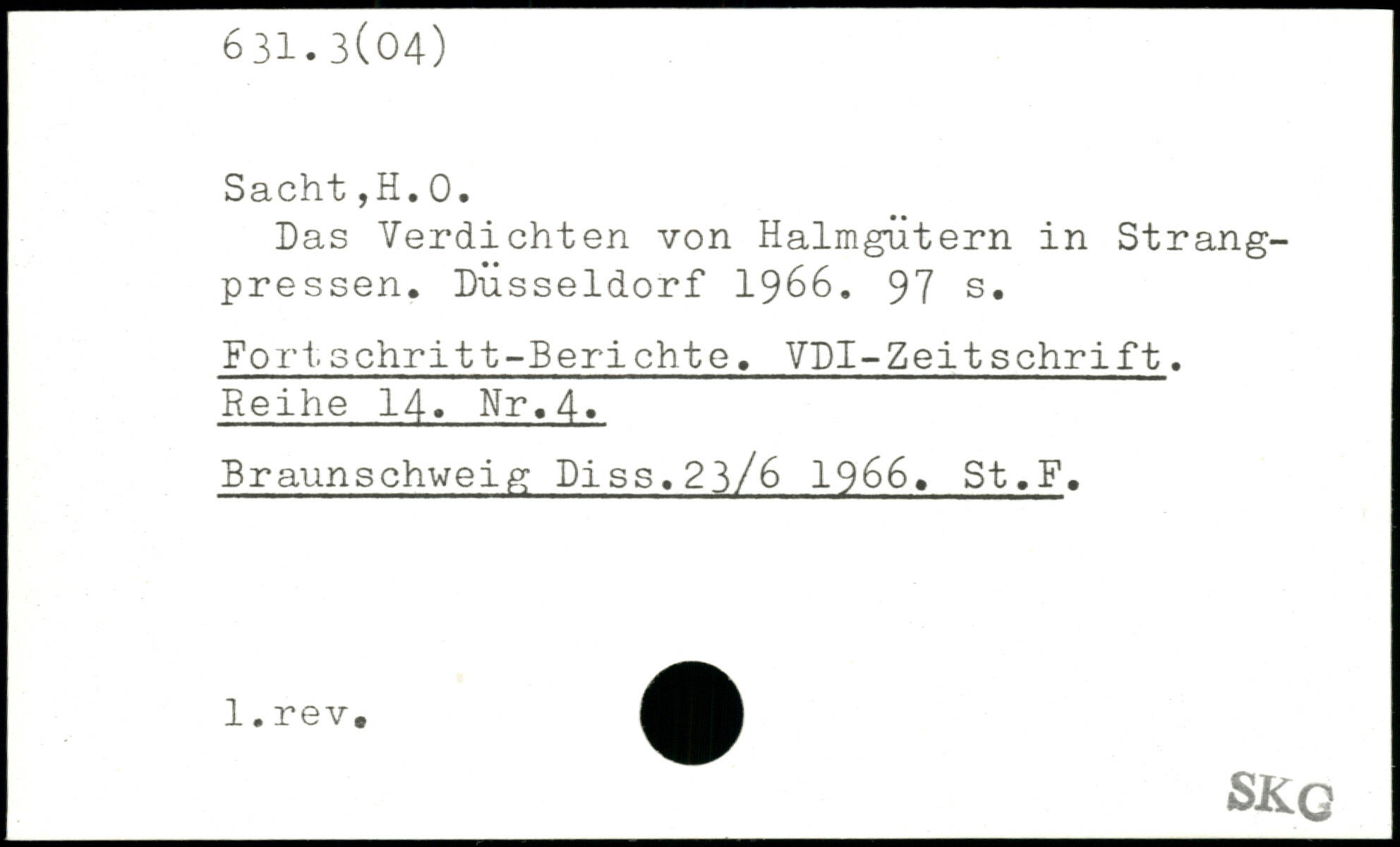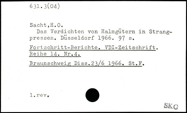 Das Verdichten von Halmgütern in Strangpressen. Düsseldorf 1966.