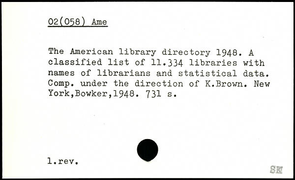 The American library directory 1948. A classified list of 11.334 libraries with names of librarians and statistical data. Comp, under the direction of K.Brown.