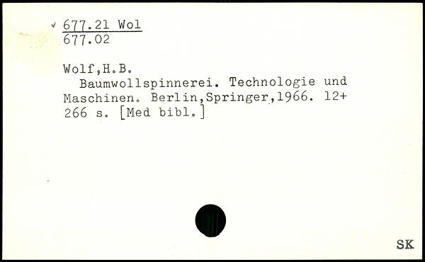 Wolf,HeBc Baumwollspinnerei. Technologie und Maschinen.