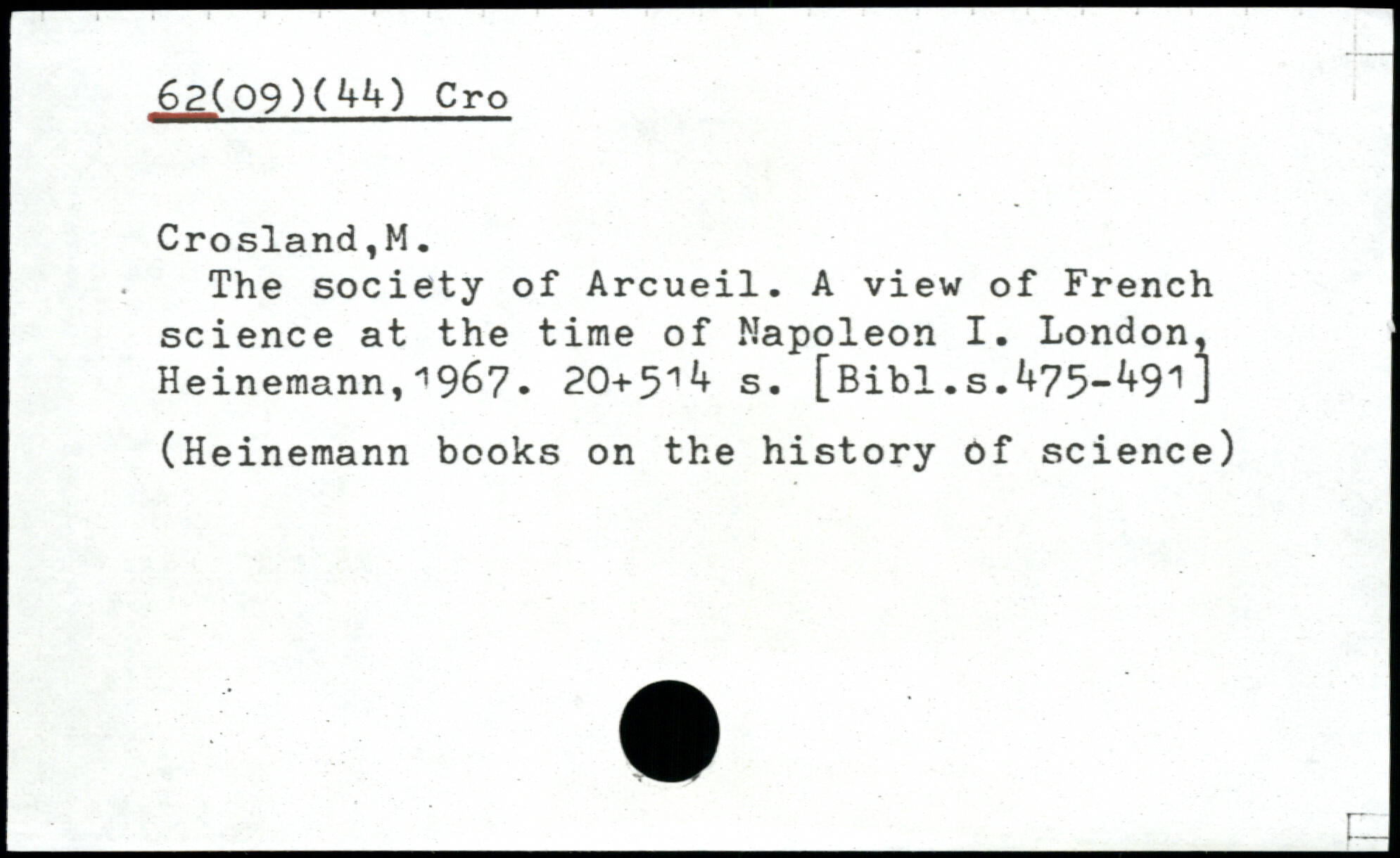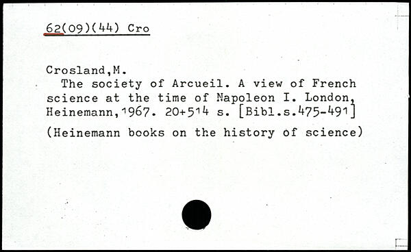 The society of Arcueil. A view of French science at the time of Napoleon I.