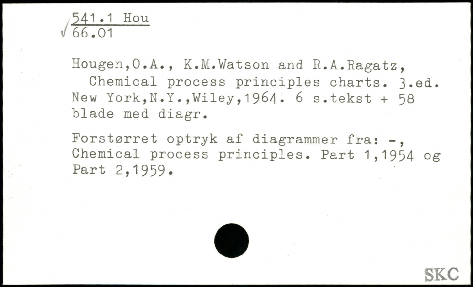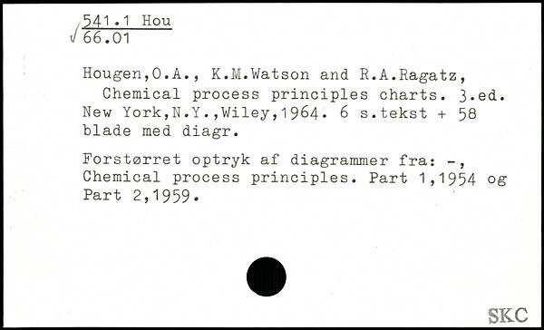 Hougen,0.A., K.M.Watson and R.A.Ragatz, Chemical process principles charts.