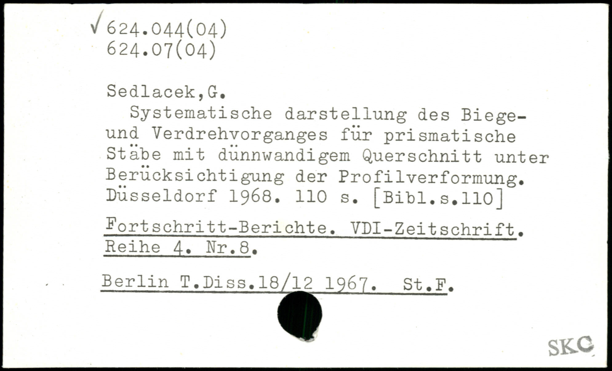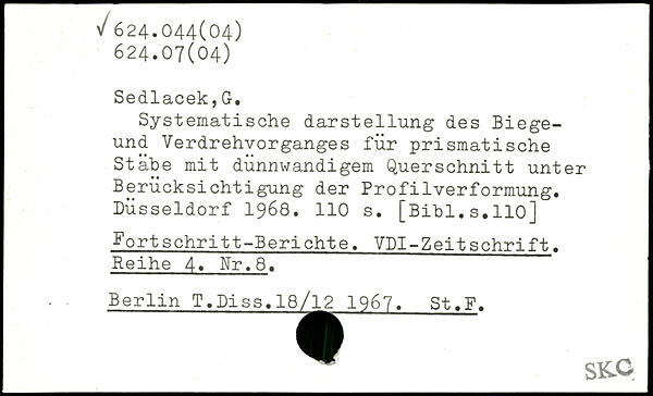 Systematische darstellung des Biege-und Verdrehvorganges für prismatische Stäbe mit dünnwandigem Querschnitt unter Berücksichtigung der Profilverformung. Düsseldorf 1968.