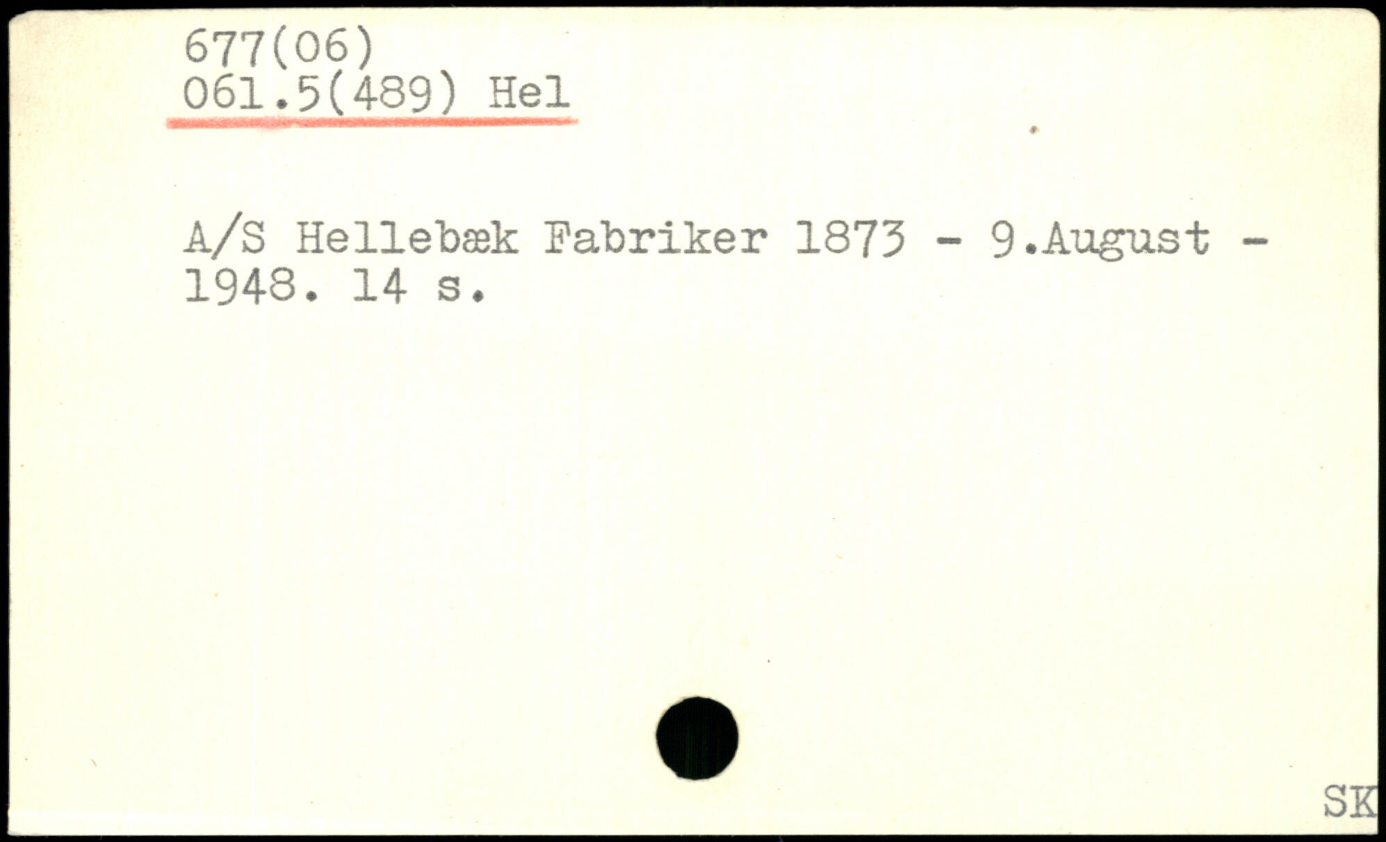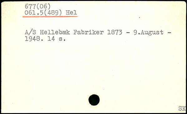 A/S Hellebæk Fabriker 1873 - 9.August -1948.
