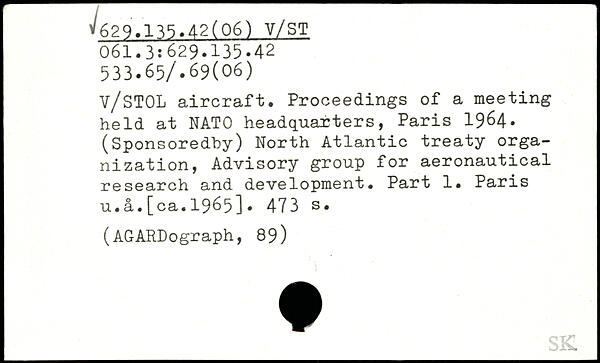 V/STOL aircraft. Proceedings of a meeting held at NATO headquarters