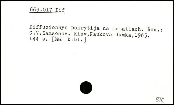Diffuzionnye pokrytija na metallach. Red.: G.V.Samsonov. Kiev,Naukova dumka,196S