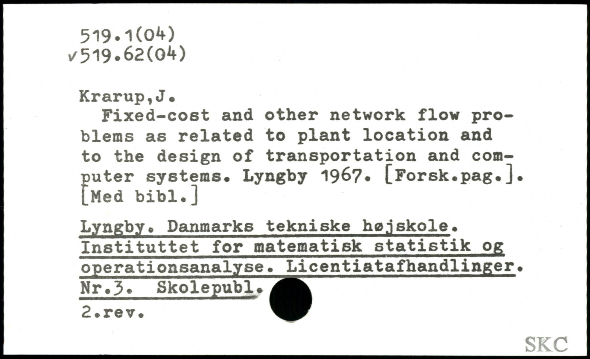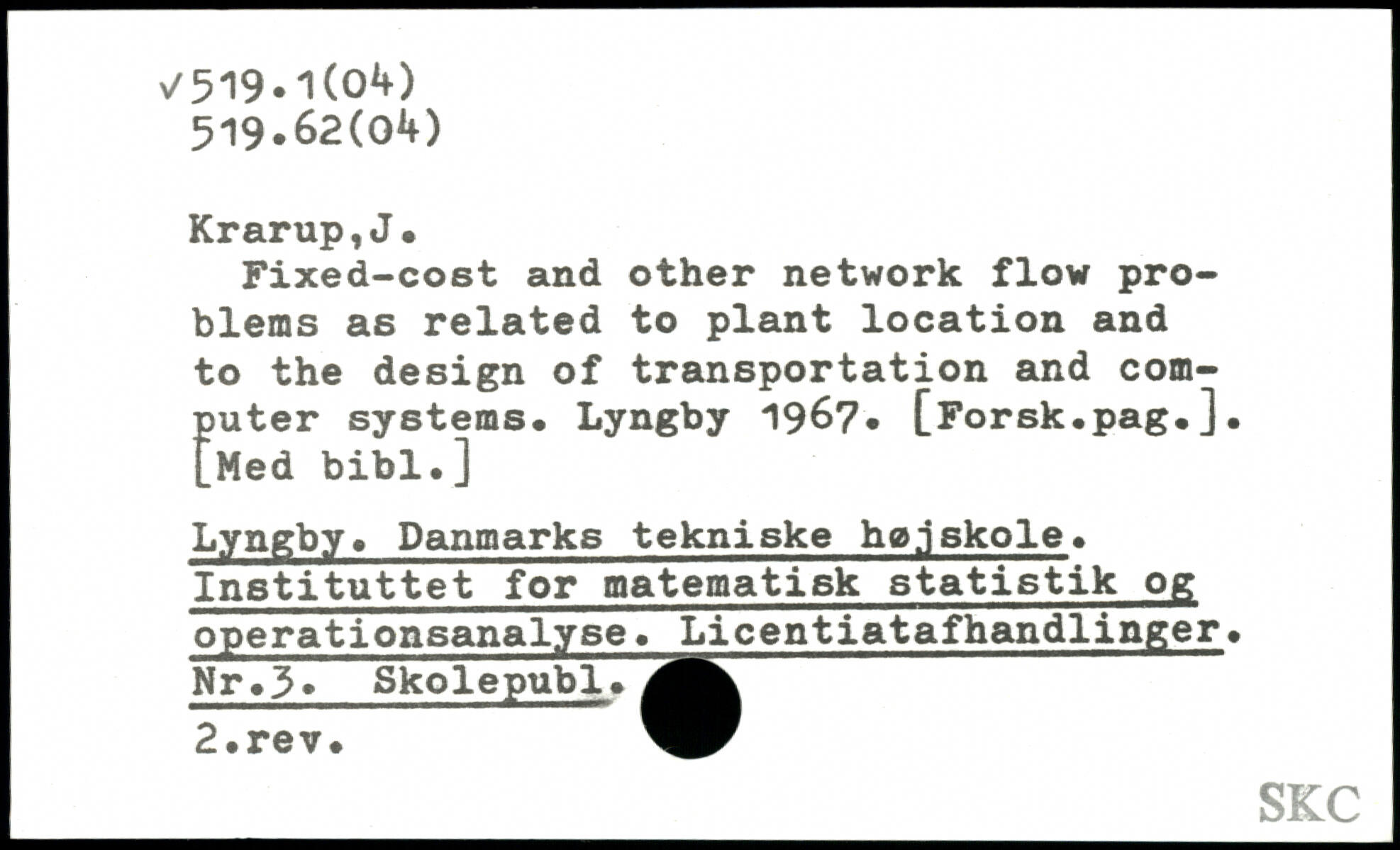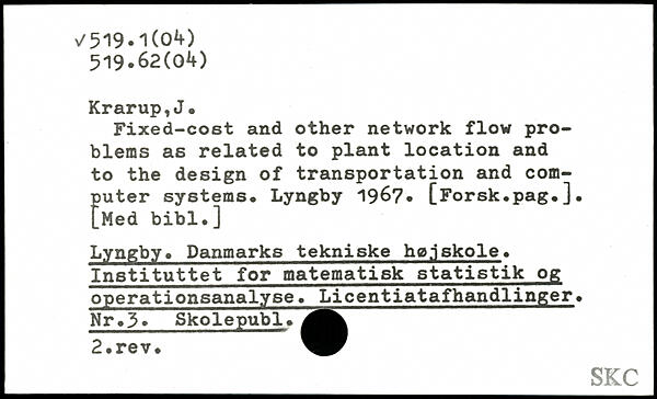 Fixed-cost and other network flow problems as related to plant location and to the design of transportation and computer systems. Lyngby 1967.