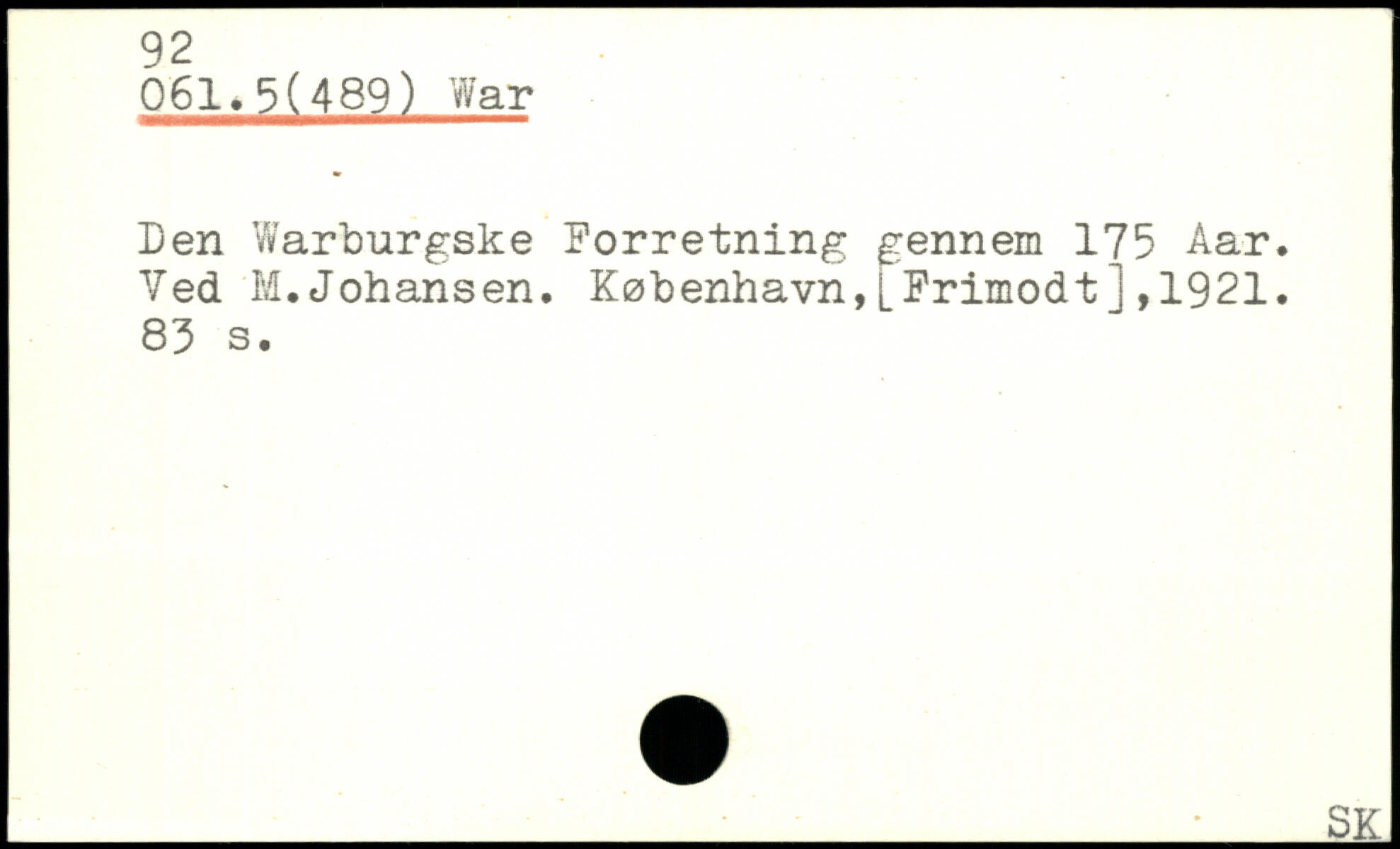 Den Warburgske Forretning gennem 175 Aar. Ved M. Johansen. København, ’LFrimodt] ,1921.