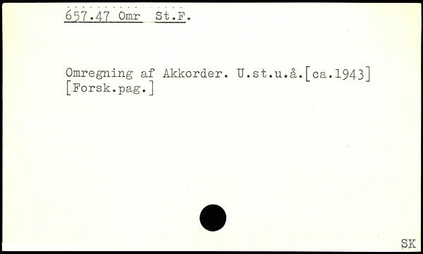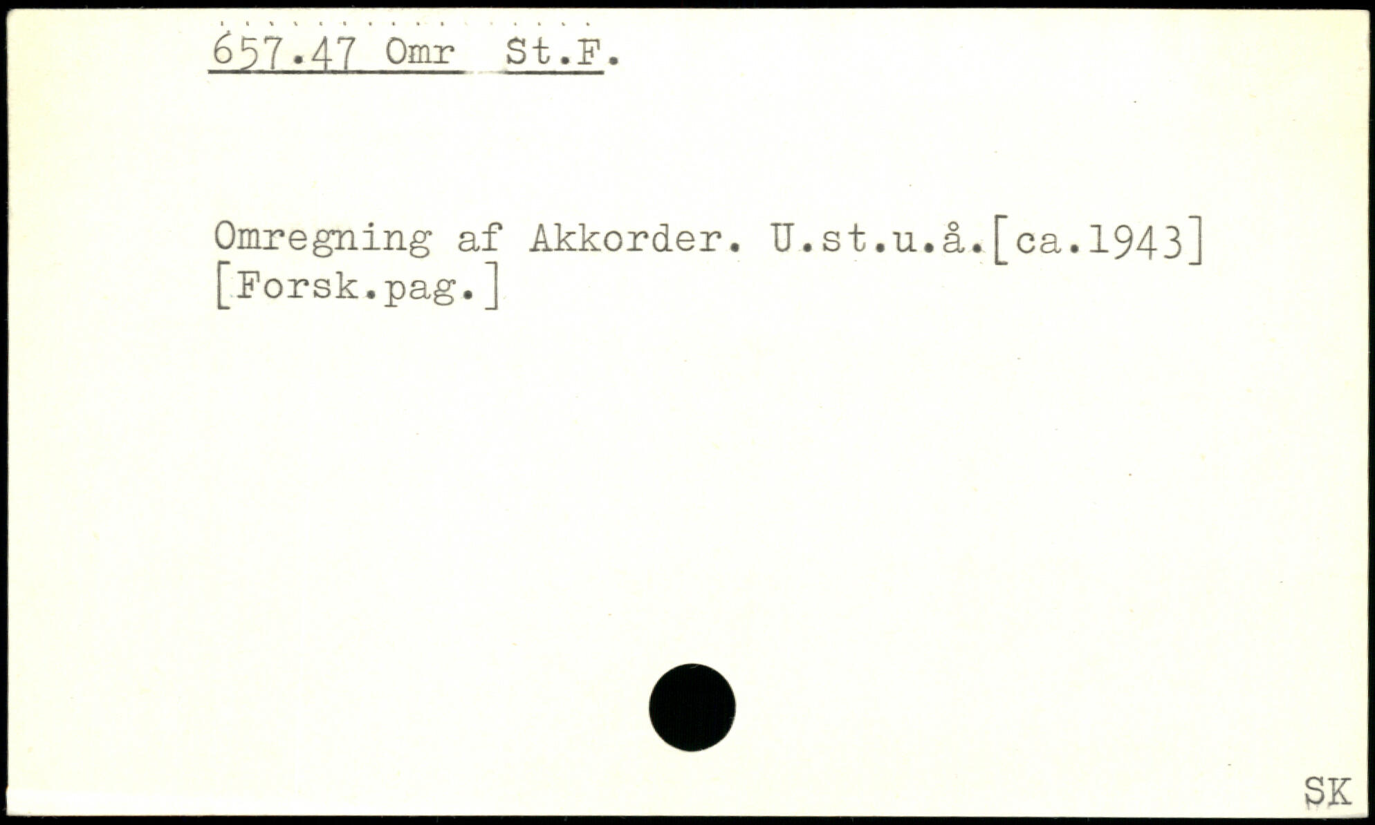 Omregning af Akkorder. U.st.u.å.[ca.1943] [Forsk.pag.]