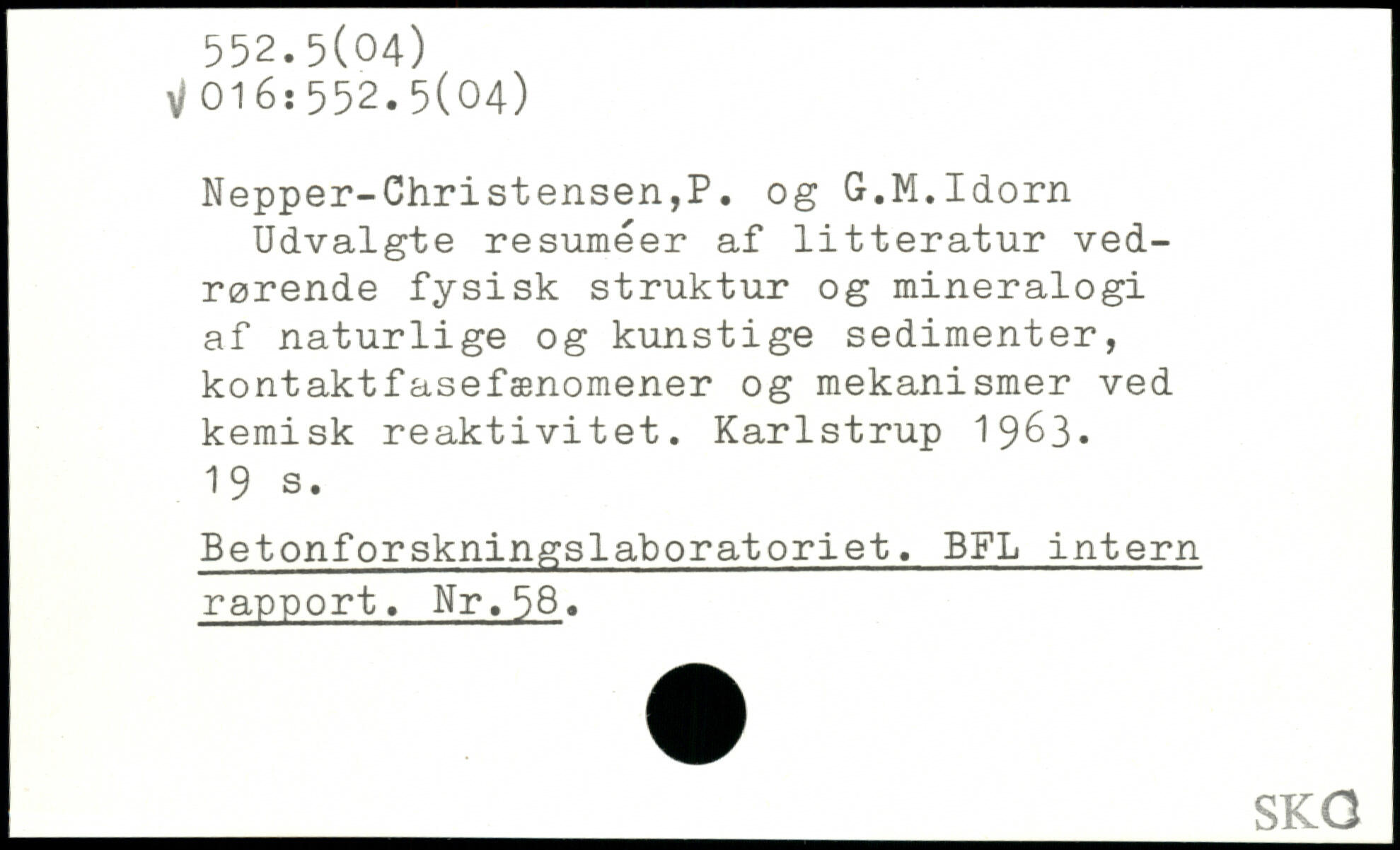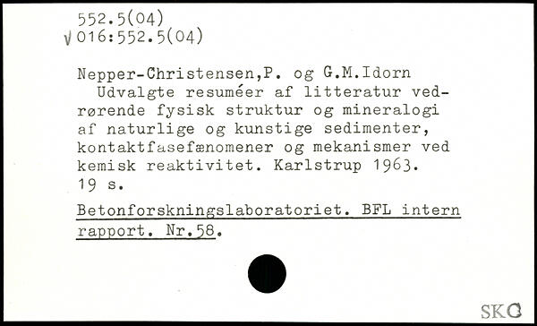 Nepper-Christensen,P. og G.M.Idorn Udvalgte resuméer af litteratur vedrørende fysisk struktur og mineralogi af naturlige og kunstige sedimenter, kontaktfasefænomener og mekanismer ved kemisk reaktivitet. Karlstrup 19&3.