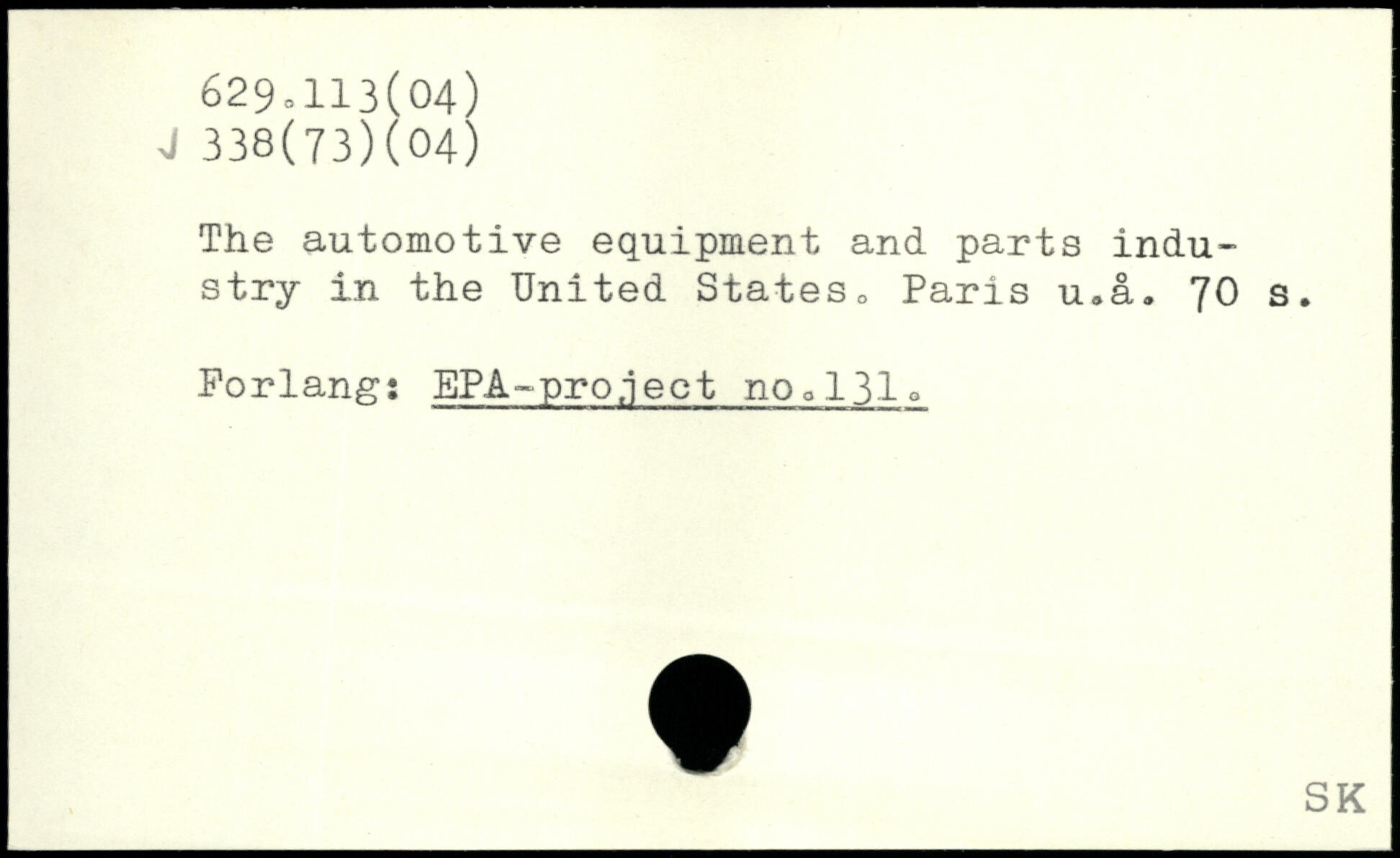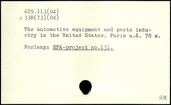 The automotive equipment and parts industry in the United States, Paris Forlang: EPA-pro.ject no0111o