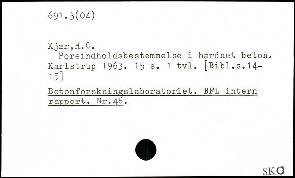 Poreindholdsbestemmelse i hærdnet beton. Karlstrup 1963