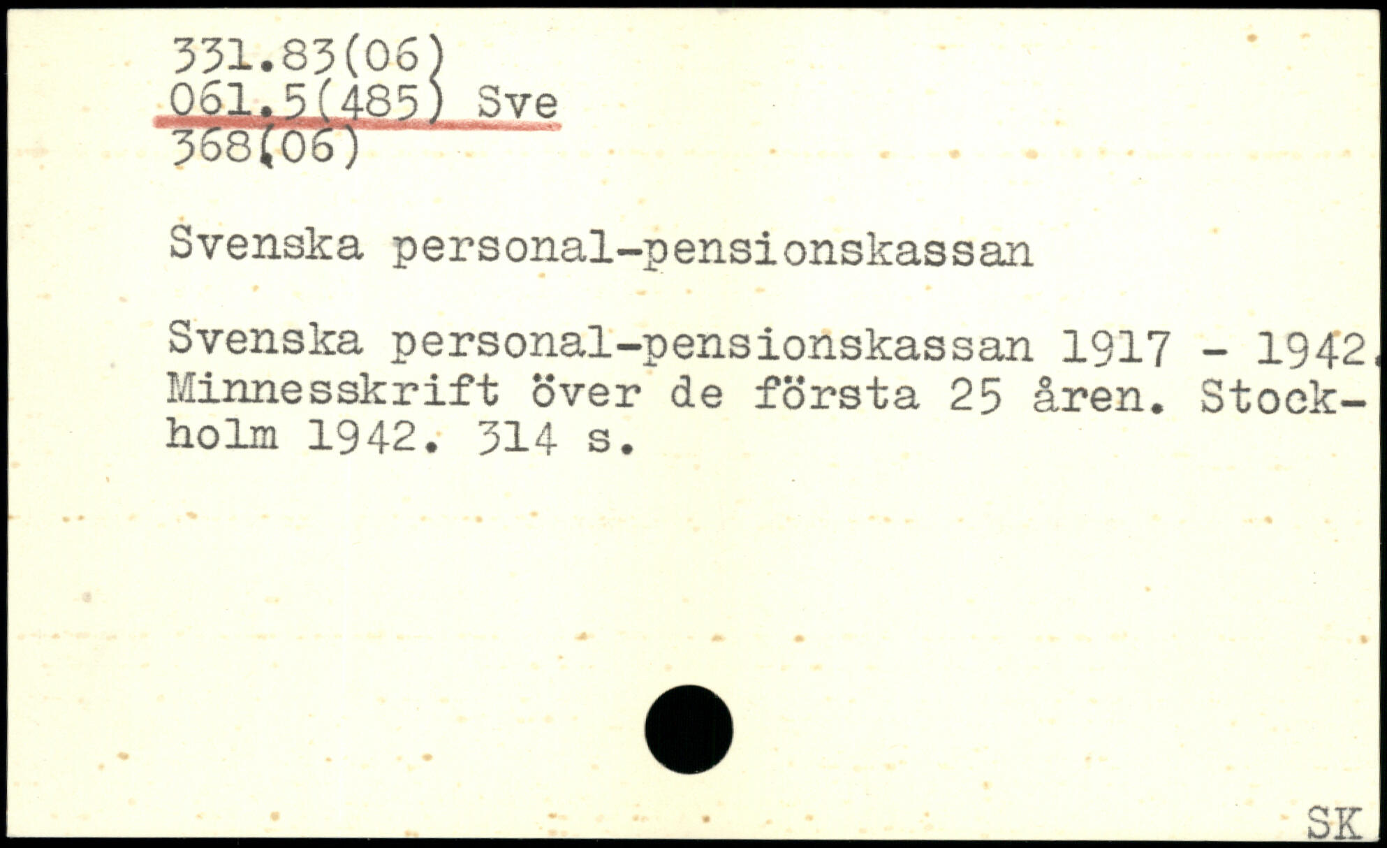 saillpsv; Svenska personal-pensionskassan Svenska personal-pensionskassan 1917 - 1942, Minnesskrift över de första 25 åren.