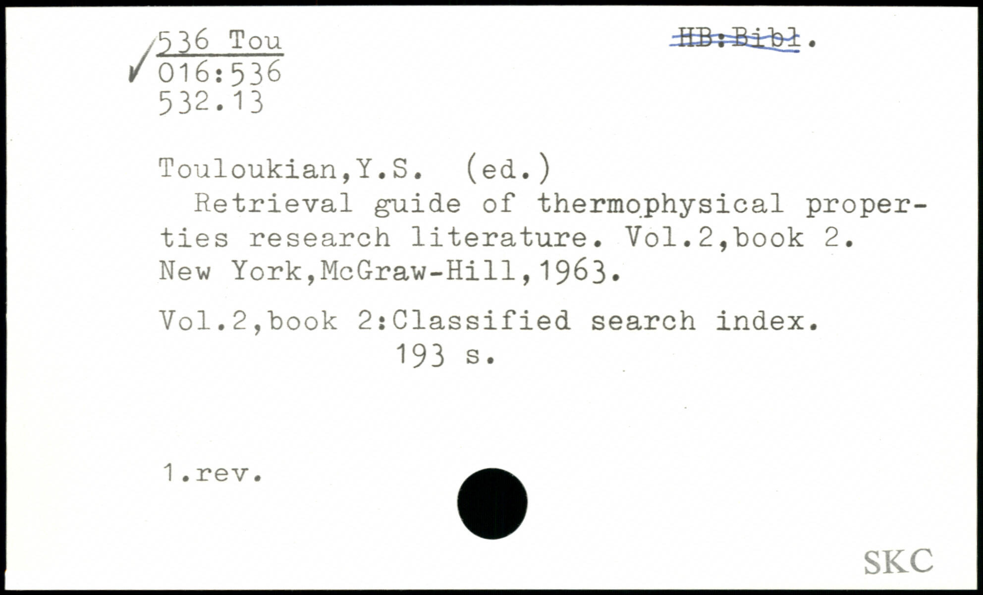 UDK: 5, 36 Tou, 016:536, 532.13
