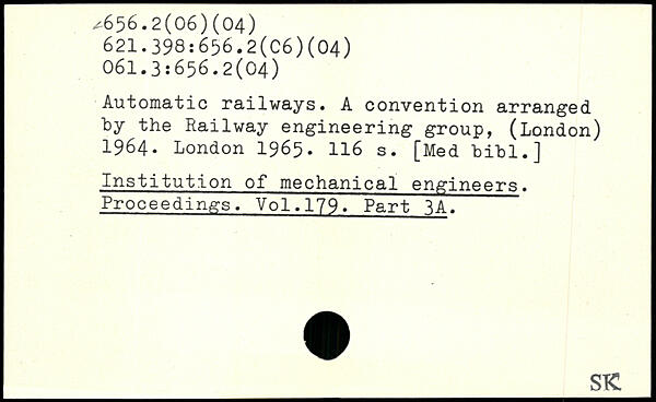 Automatic railways. A convention arranged by the Railway engineering group, (London) 1964.