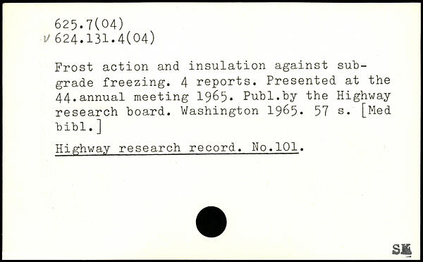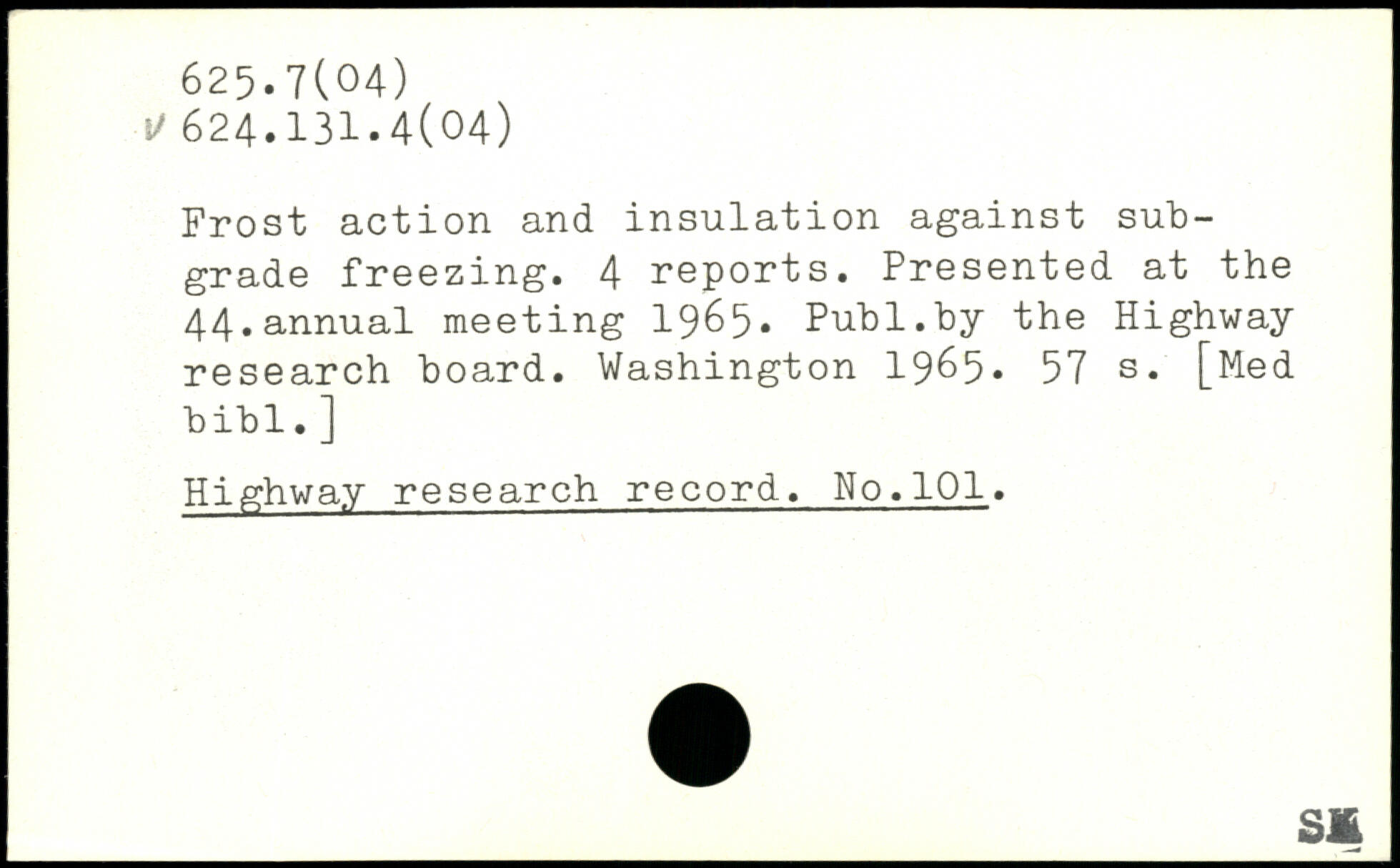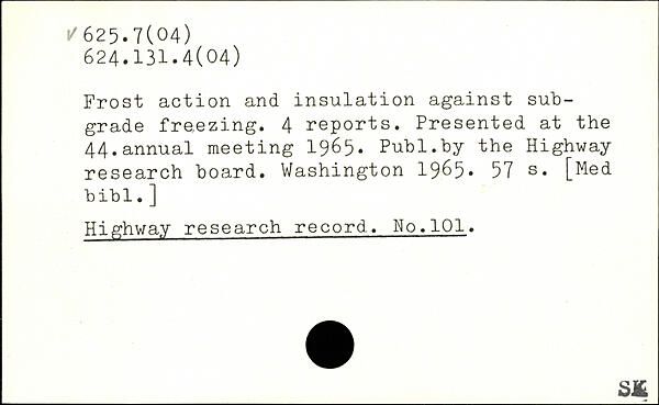 Frost action and insulation against subgrade freezing. 4 reports. Presented at the 44.annual meeting 1965.