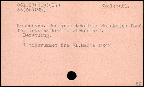 København. Danmarks tekniske Højskoles fond for teknisk kemifs virksomhed. Beretning. I tidsrummet fra 31.Marts 1923-