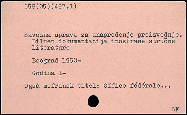 Savezna uprava za unapredenje proizvodnje. Bilten dokumentacija inostrane strucne literature
