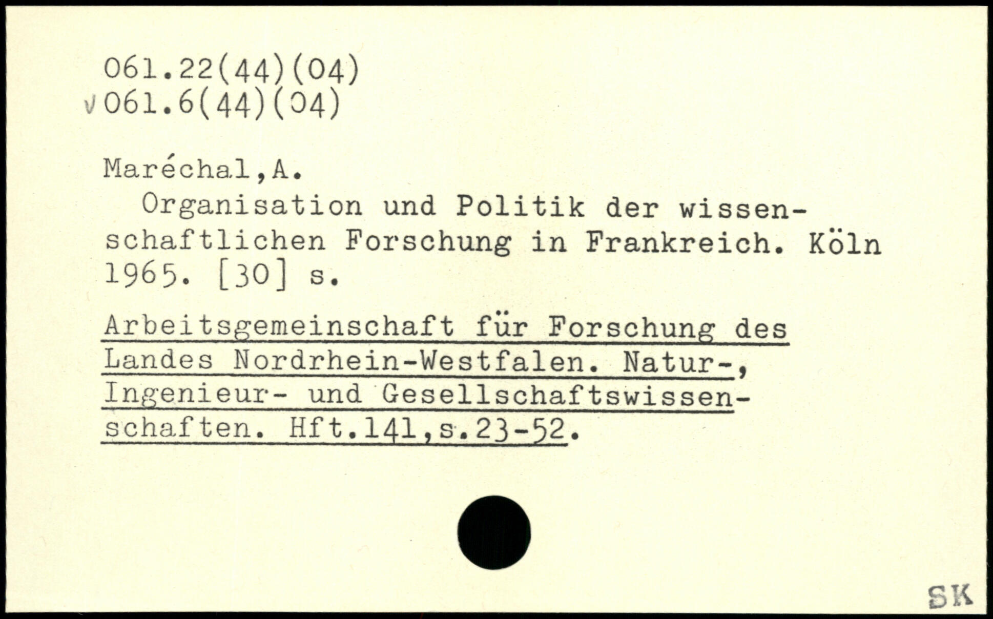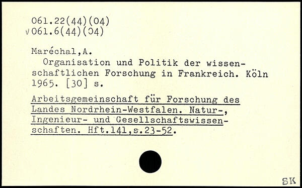 Organisation und Politik der wissenschaftlichen Forschung in Frankreich.