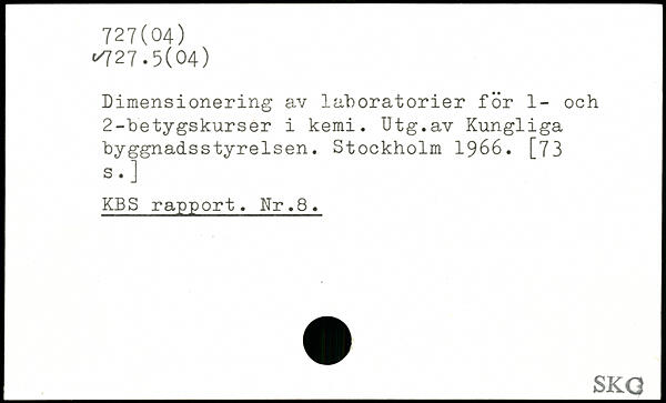 Dimensionering av laboratorier för 1- och 2-betygskurser i kemi. Utg.av Kungliga byggnadsstyrelsen.