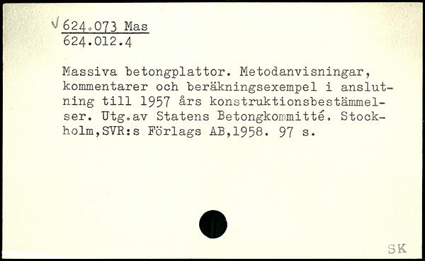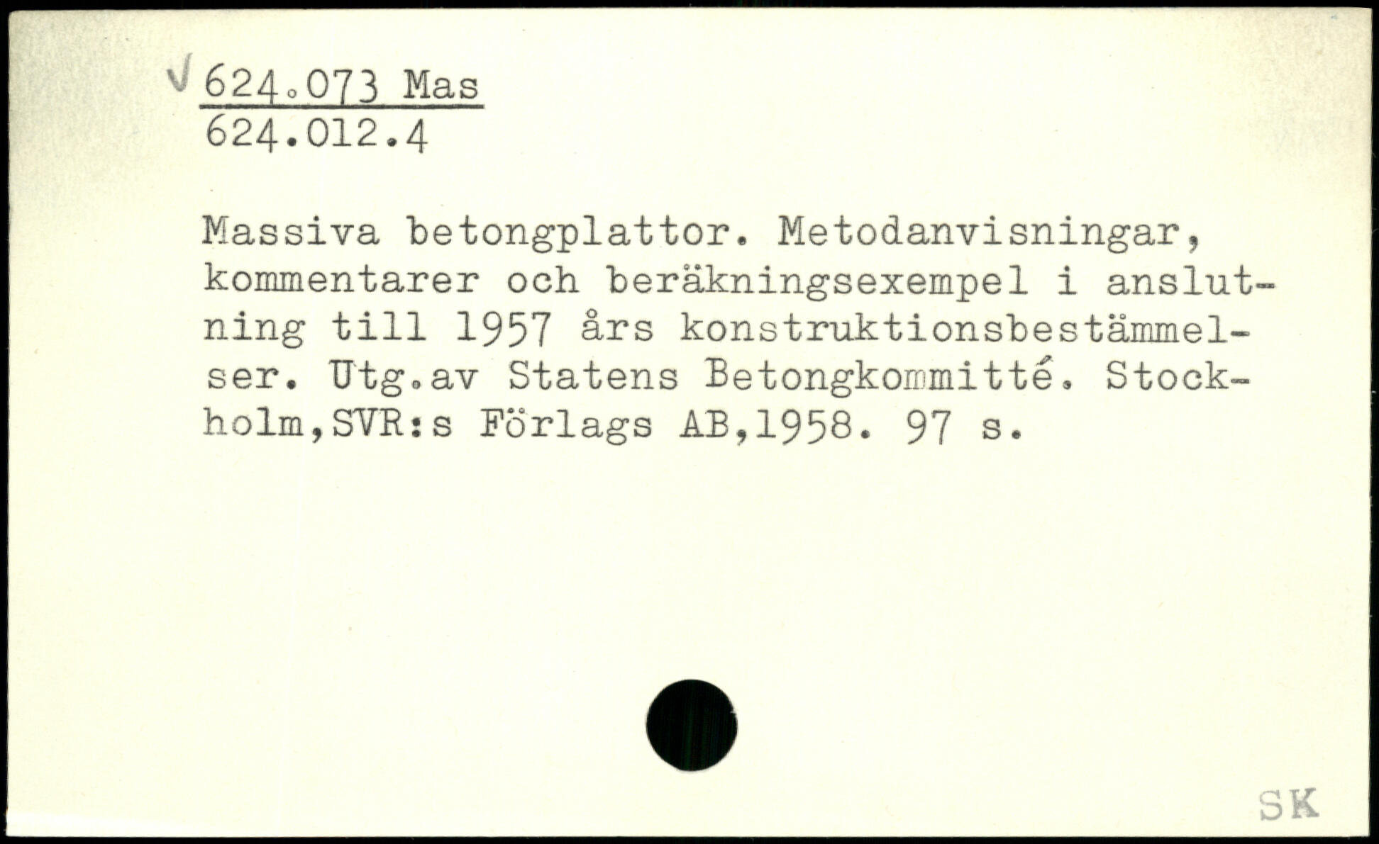 Massiva betongplattor. Metodanvisningar, kommentarer och beräkningsexempel i anslutning till 1957 års konstruktionsbestämmelser. Utg.av