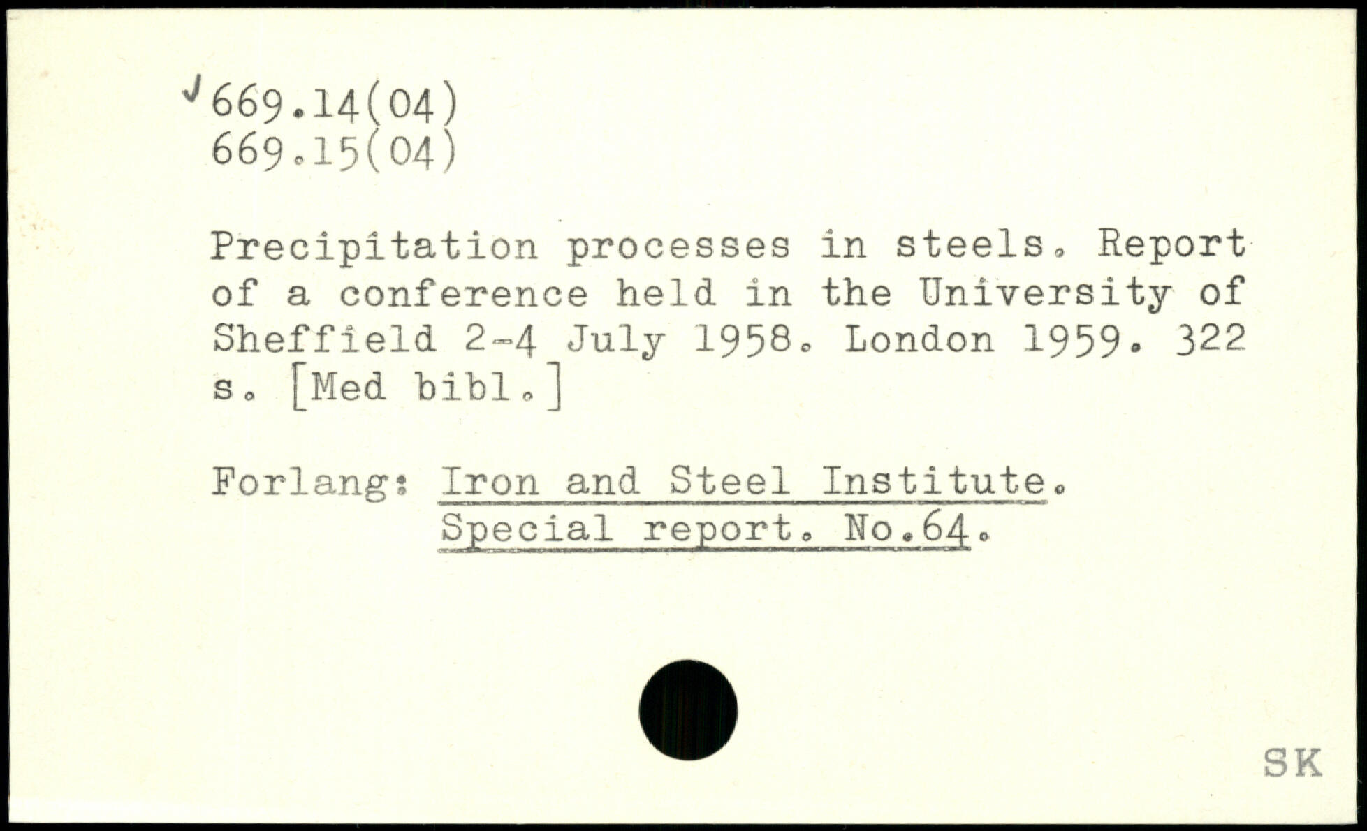 Precipitation processes in steels, Report of a conference held in the University of Sheffield 2-4 July 1958