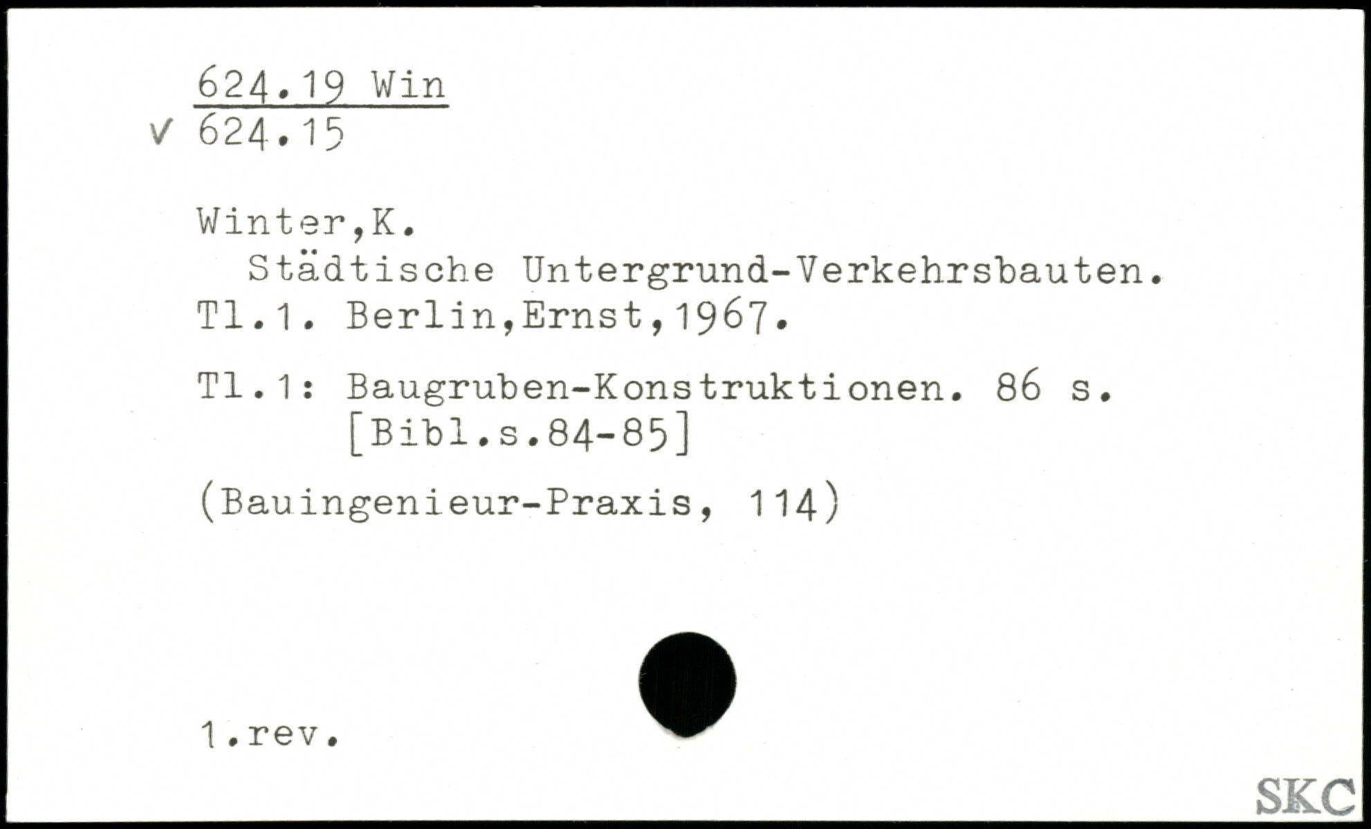 Städtische Untergründ-Verkehrsbauten. T1.1.