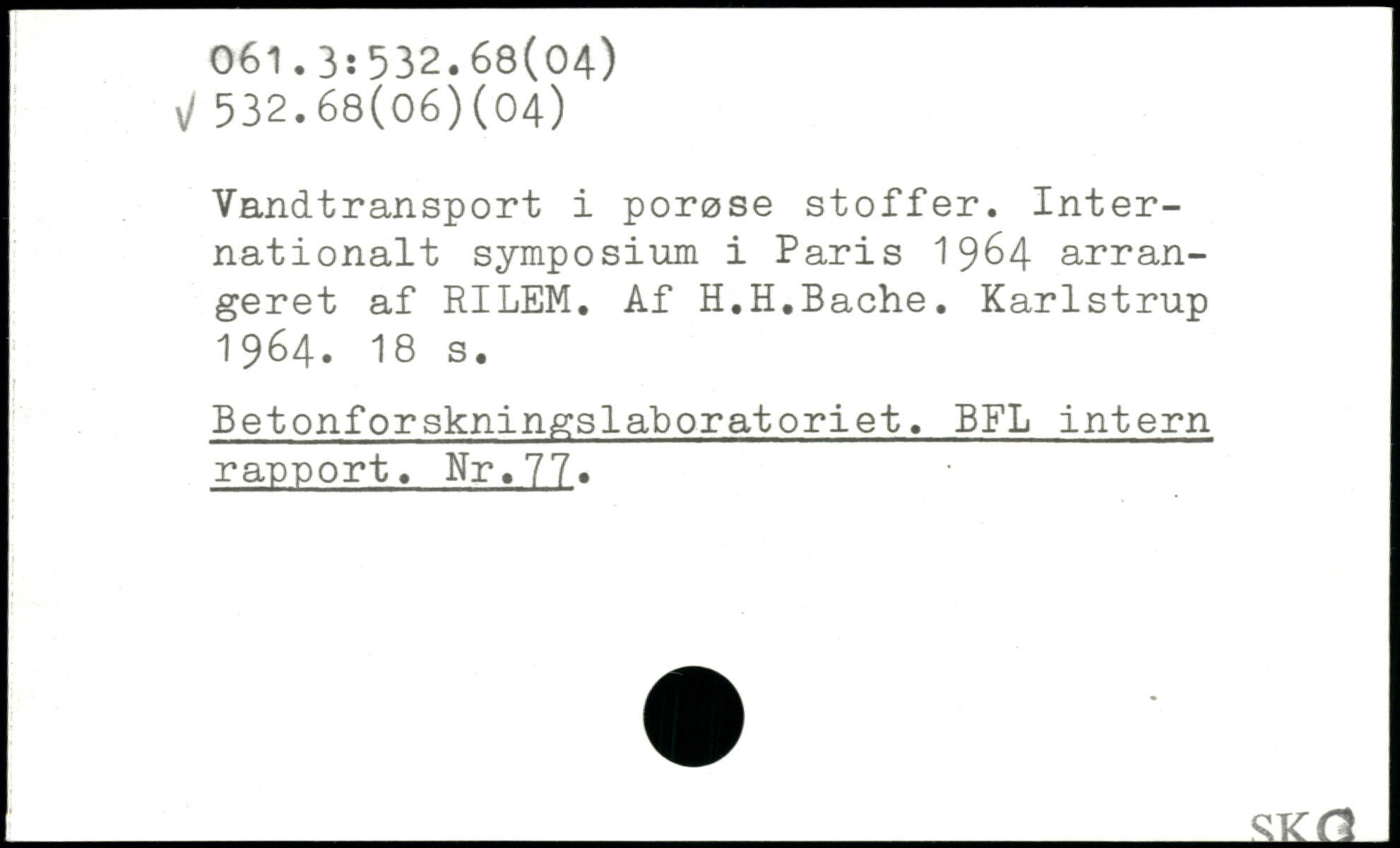 Vandtransport i porøse stoffer. Internationalt symposium i Paris 19&4 arrangeret af RILEM. Af H.H.Bache. Karlstrup 1964.