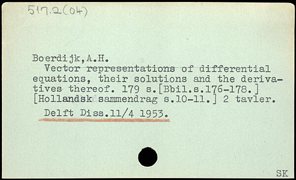 Boerdijk, A.H. Vector representations of differential equations, their solutions and the derivatives thereof.
