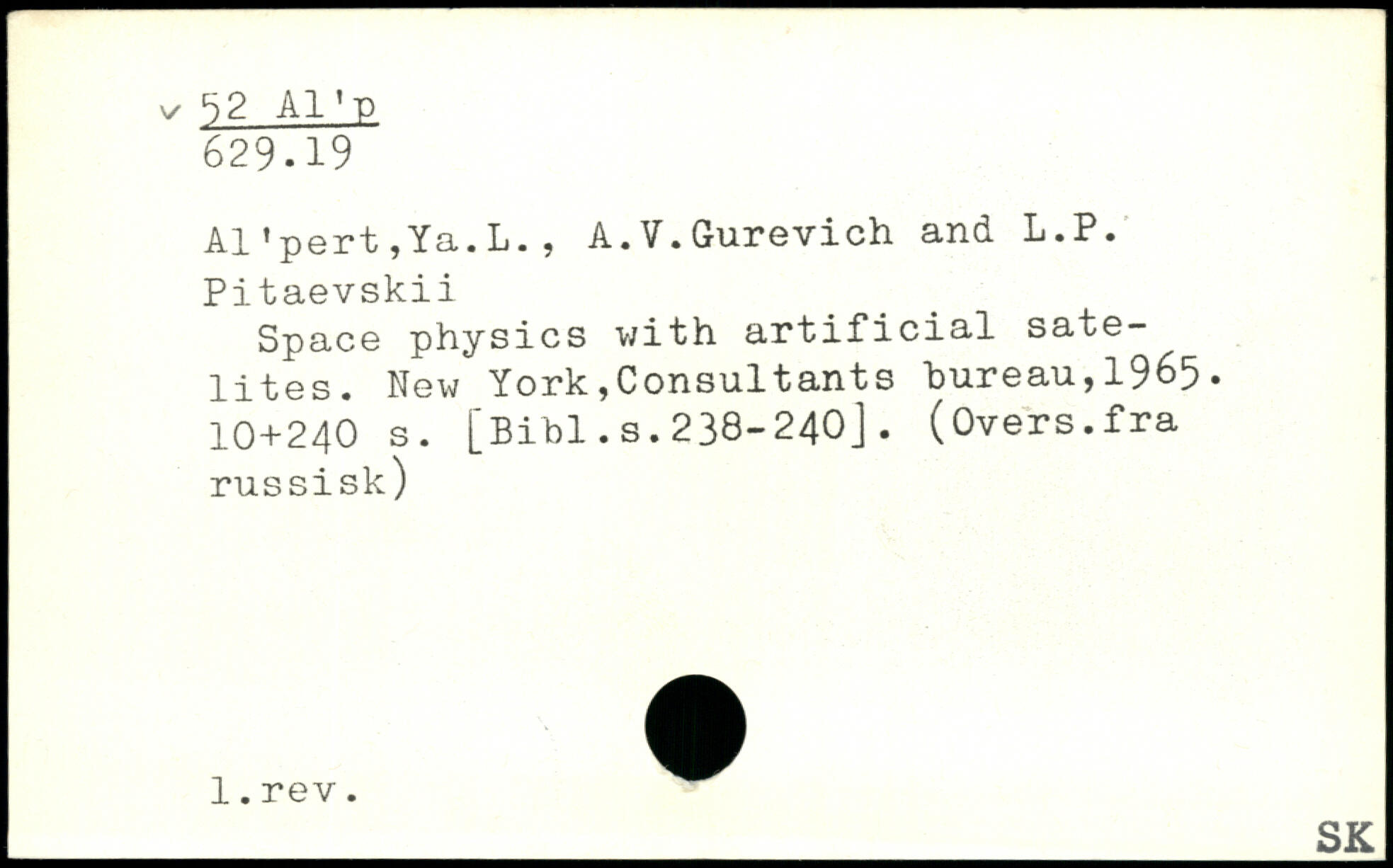 Al'pert,Ya.L., A.V.Gurevich and L.P. Pitaevskii Space physics with artificial sate-lites. New York, Consultant s "bureau, 1965.
