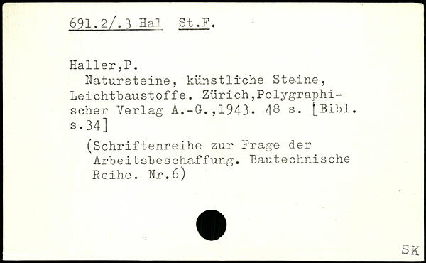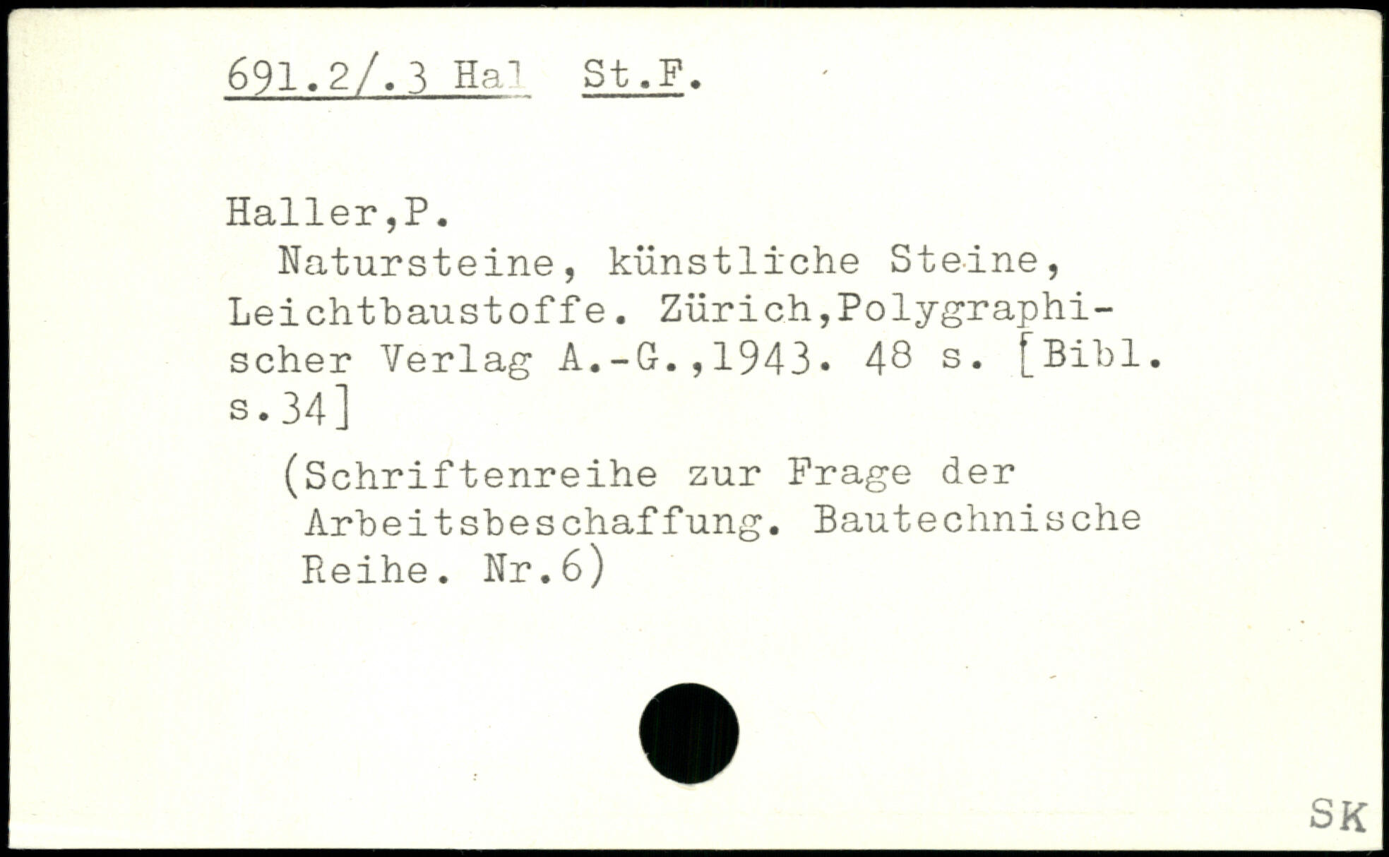 Natursteine, künstliche Steine, Leichtbaustoffe. Zürich,Polygraphischer Verlag A.-G.,1943.