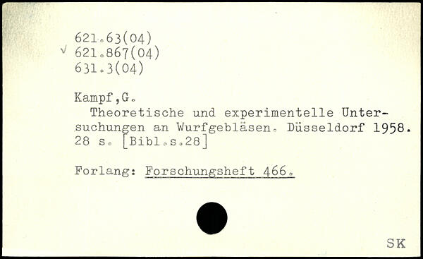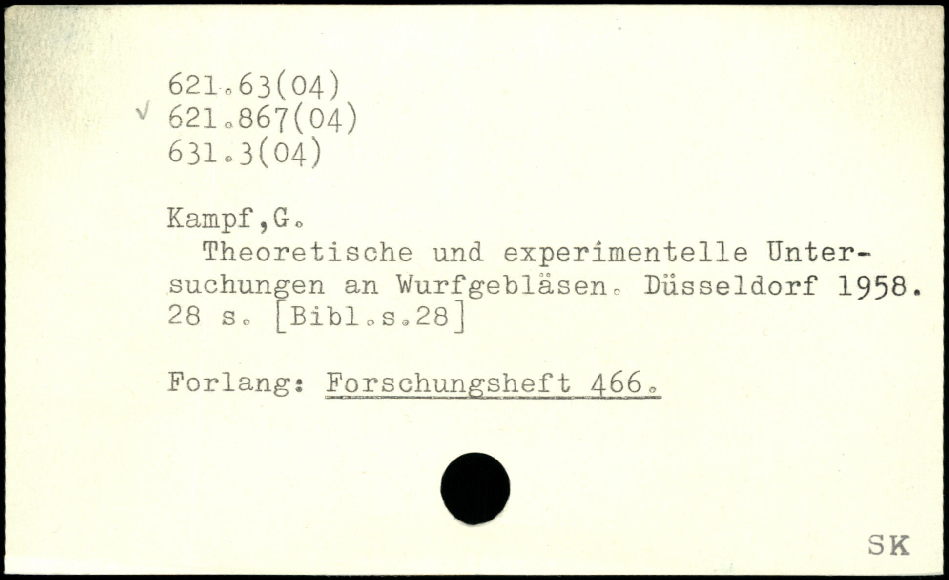 Theoretische und experimentelle Untersuchungen an Wurfgeblaseno Düsseldorf 1958.