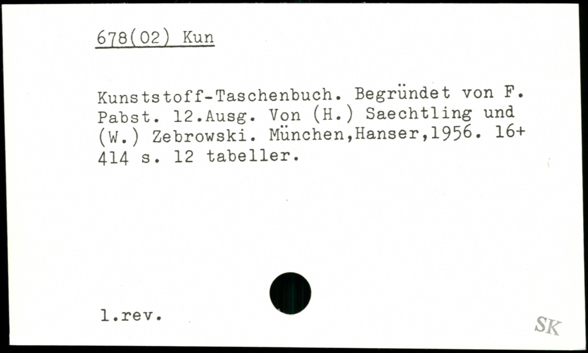 Kunststoff-Taschenbuch. Begründet von F. Pabst. 12.Ausg. Von (H.) Saechtling und (W.) Zebrowski.