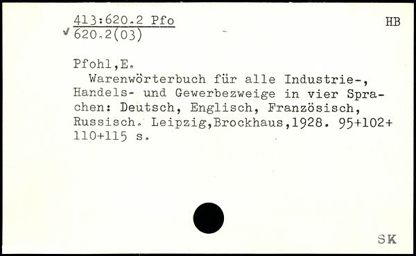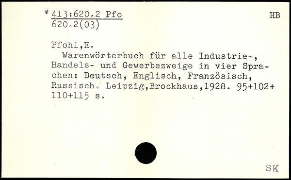 Warenwörterbuch für alle Industrie-, Handels- und Gewerbezweige in vier Sprachen: