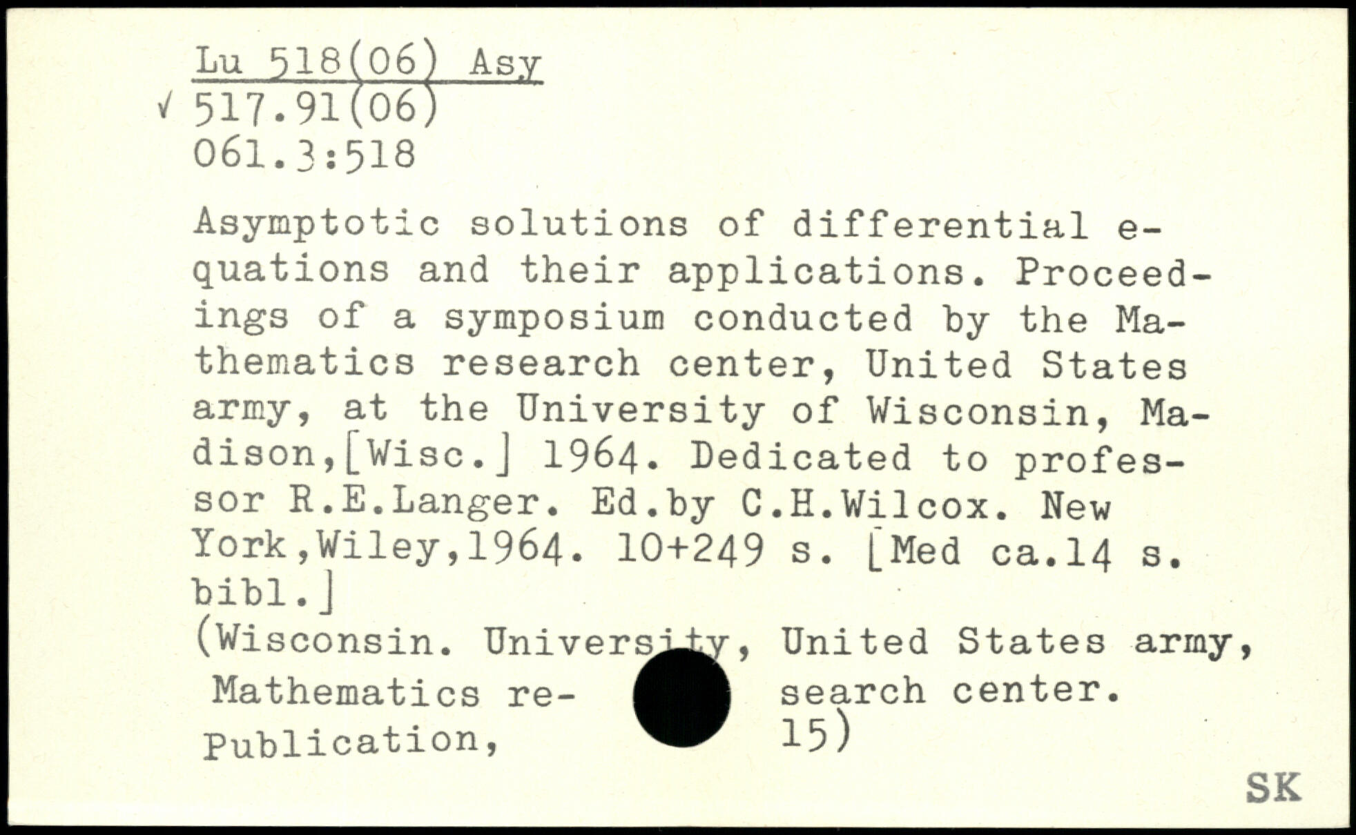 Asymptotic solutions of differential e-quations and their applications. Proceedings of a symposium conducted by the Mathematics research center, United States army, at the University of Wisconsin, Madison , [Wise. J 1964. Dedicated to professor R.E.Langer. Ed.by C.H.Wilcox.