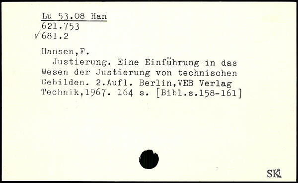 Justierung. Eine Einführung in das Wesen der Justierung von technischen Gebilden.
