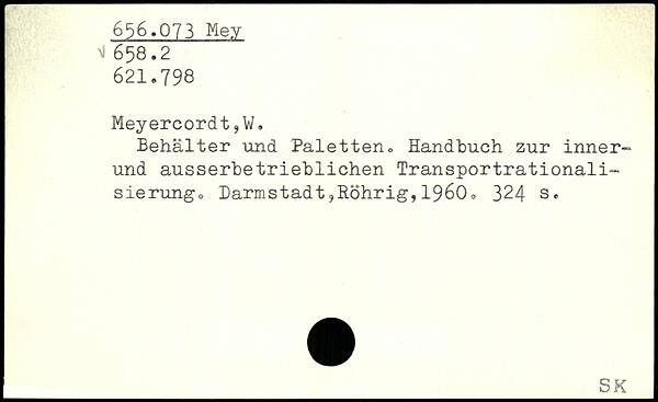 Behälter und Paletten. Handbuch zur innerund ausserbetrieblichen Transportrationalisierung. DarmstadtjRöhrig,1960.